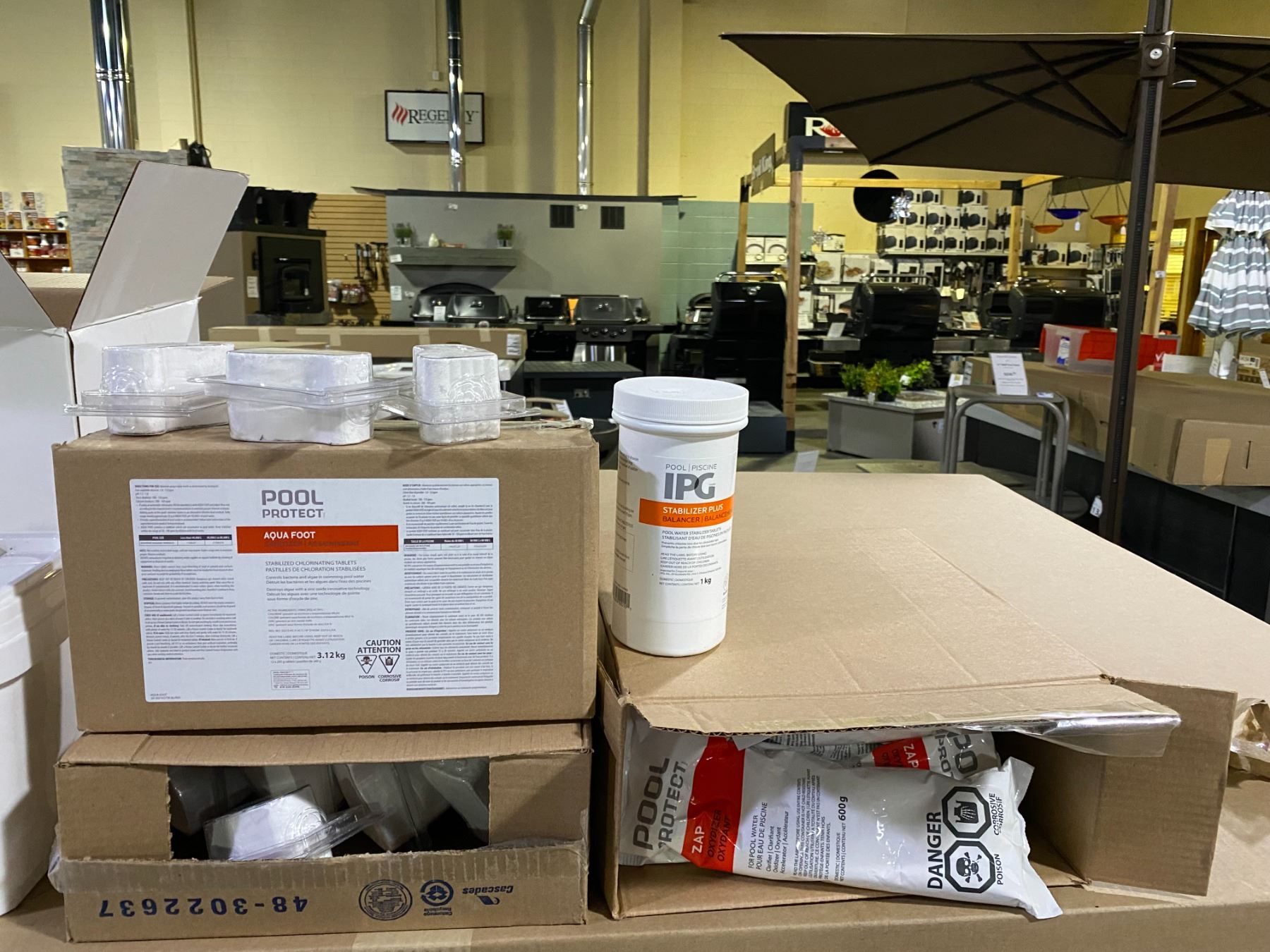 POOL MAINTENANCE KIT. TEST STRIPS, ZAP, ALK BALANCER, SPARKLE, STABILIZER +, 2 X END ALGAE, AQUA FEET, CALCIUM