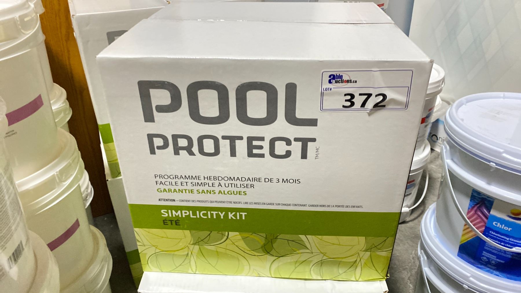 POOL PROTECT SIMPLICITY KIT. 3 MONTH SUPPLY, EASY AND HASSLE FREE. 12 ZAP 600 GRAM, 24 AQUAFOOT CHLORINE TABS, 2 X END ALGAE 40 1 LITRE, 25 AQUA TEST, TESTING BOTTLE