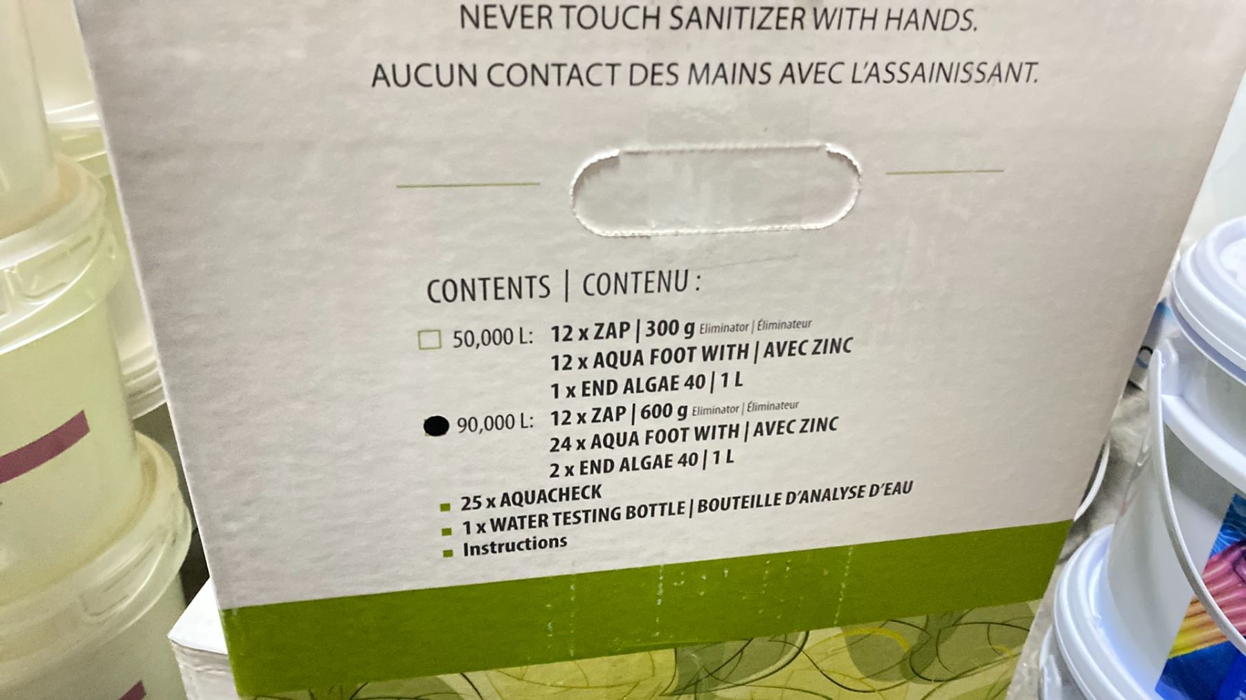 POOL PROTECT SIMPLICITY KIT. 3 MONTH SUPPLY, EASY AND HASSLE FREE. 12 ZAP 600 GRAM, 24 AQUAFOOT