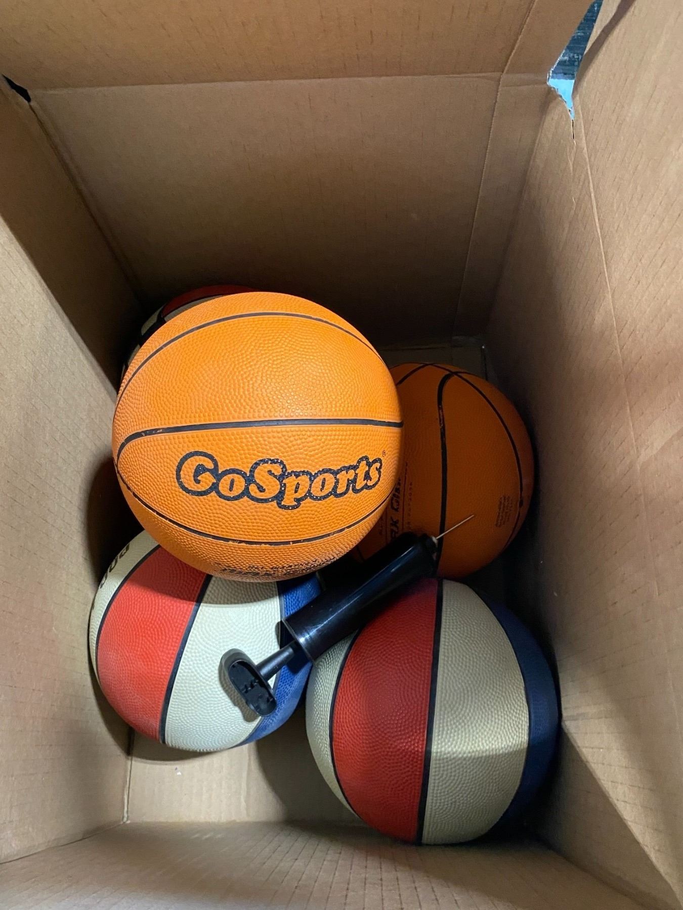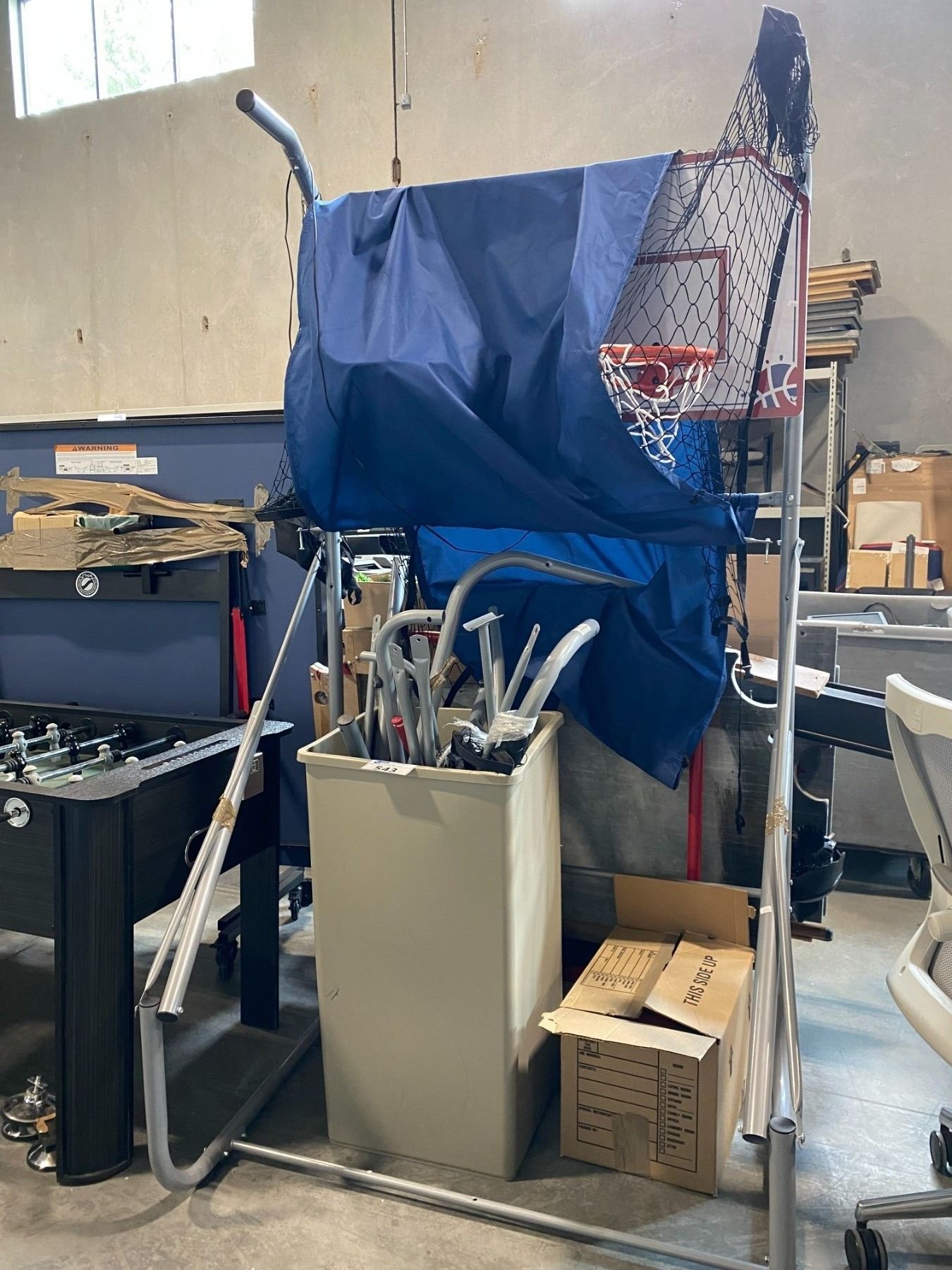 POP-A-SHOT DUAL HOOP BASKETBALL GAME WITH ASSORTED BASKETBALLS AND AIR PUMP (DISASSEMBLED)