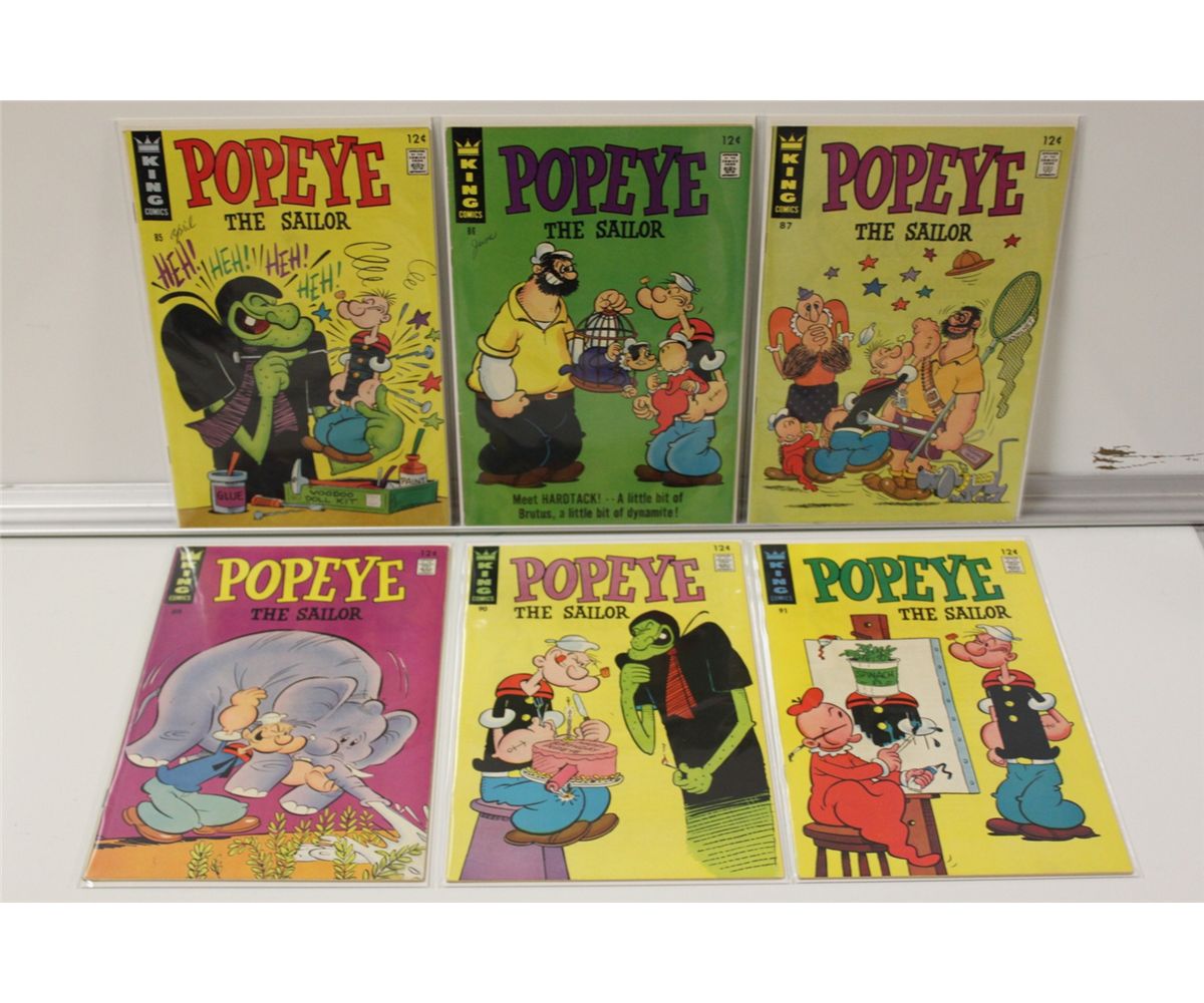 POPEYE HIGH GRADE SILVER RUN. #85, 86, 87, 89, 90, 91 (1967) SHARP, GLOSSY, WHITE & SUPPLE. NICE BOOKS! 2013 OVERSTREET GUIDE TOP END IS $252.