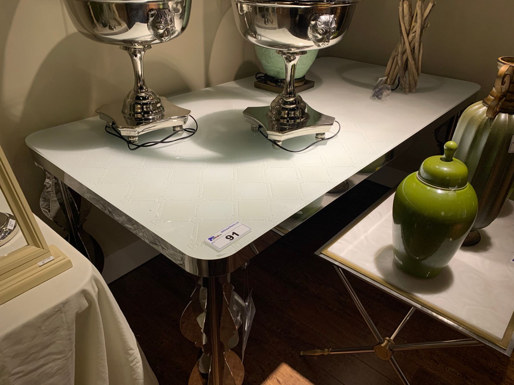 POROMEN CHROME & GLASS TOP MODERN DINING TABLE 1800 X 900 X 760 MM MSRP $3,999