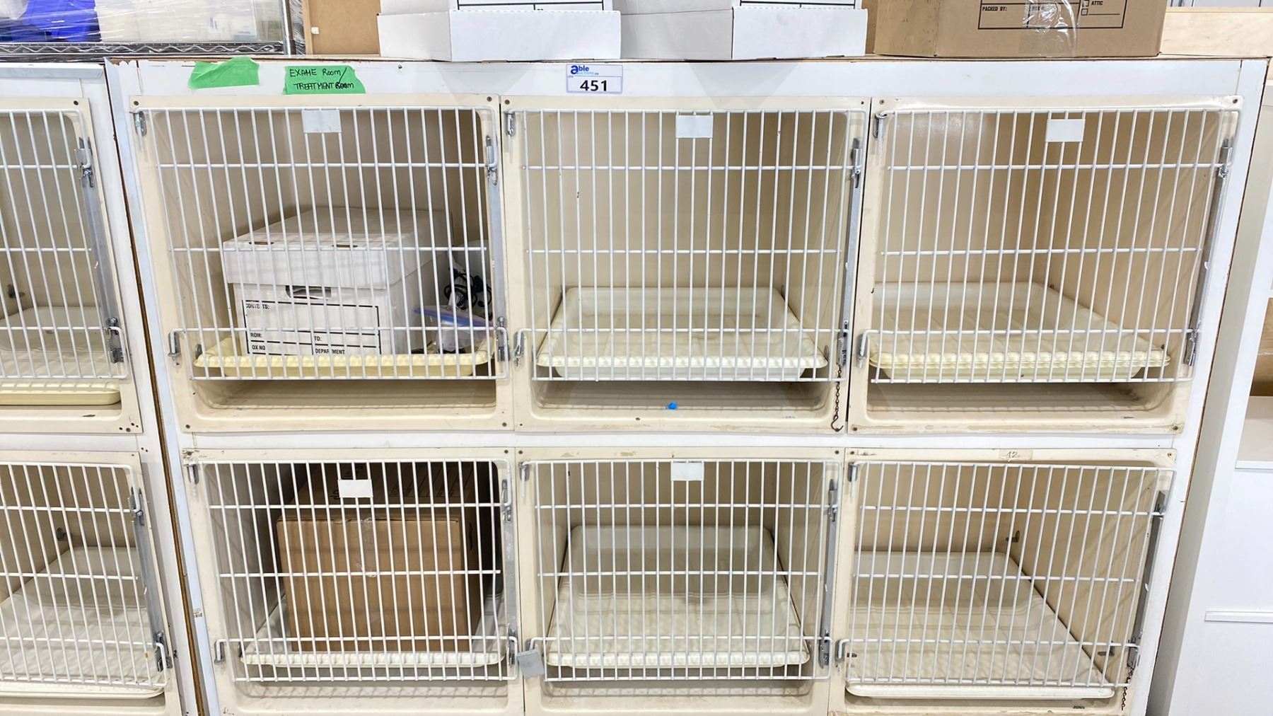 PORTABLE 6-BAY SMALL ANIMAL CAGE CABINET 79" X 24" X 60"H WITH PROP CONTENTS