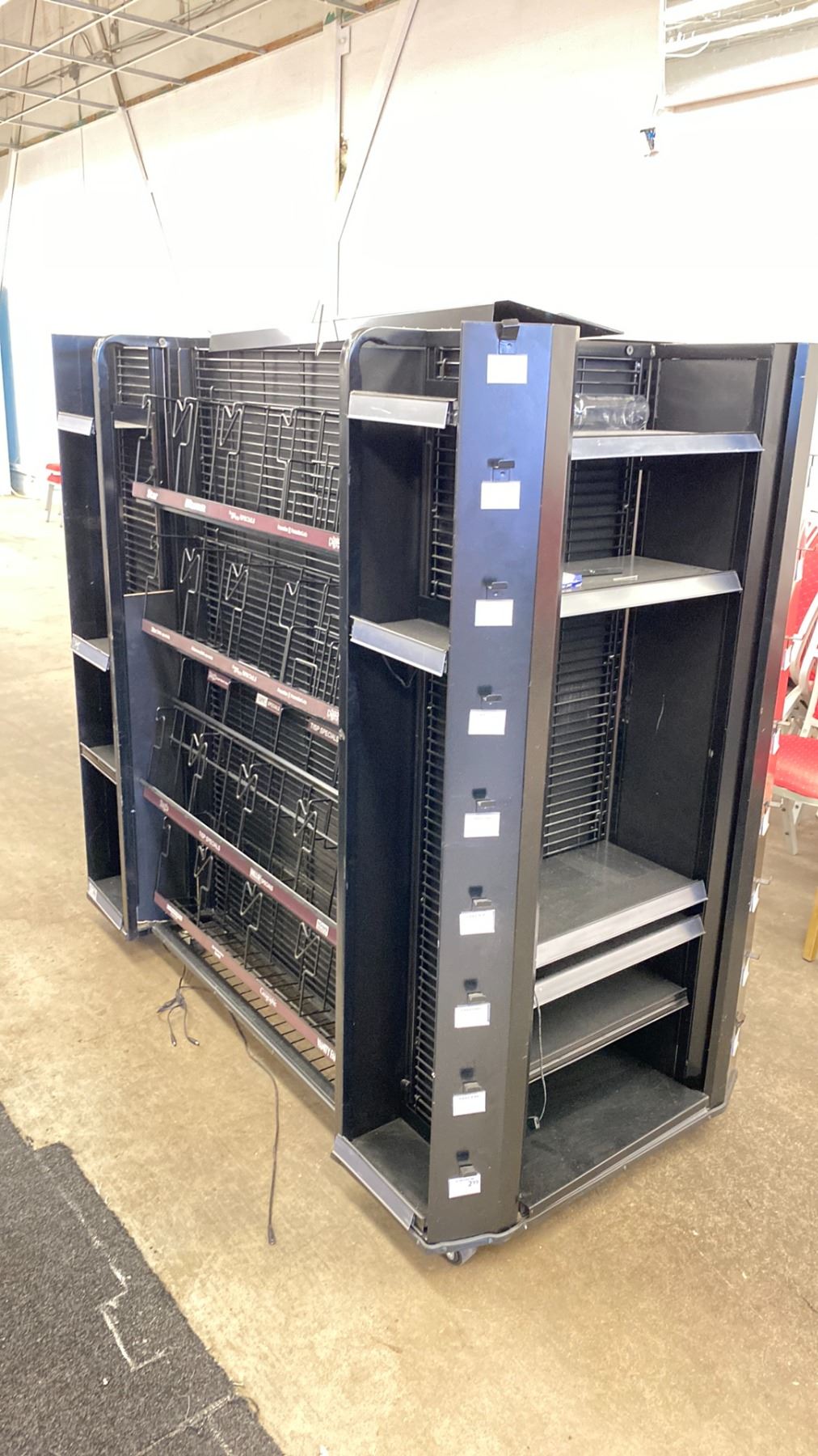 PORTABLE METAL MAGAZINE RACK 64"L X 32"W X 60"H *ITEM LOCATED OFF SITE IN VANCOUVER*