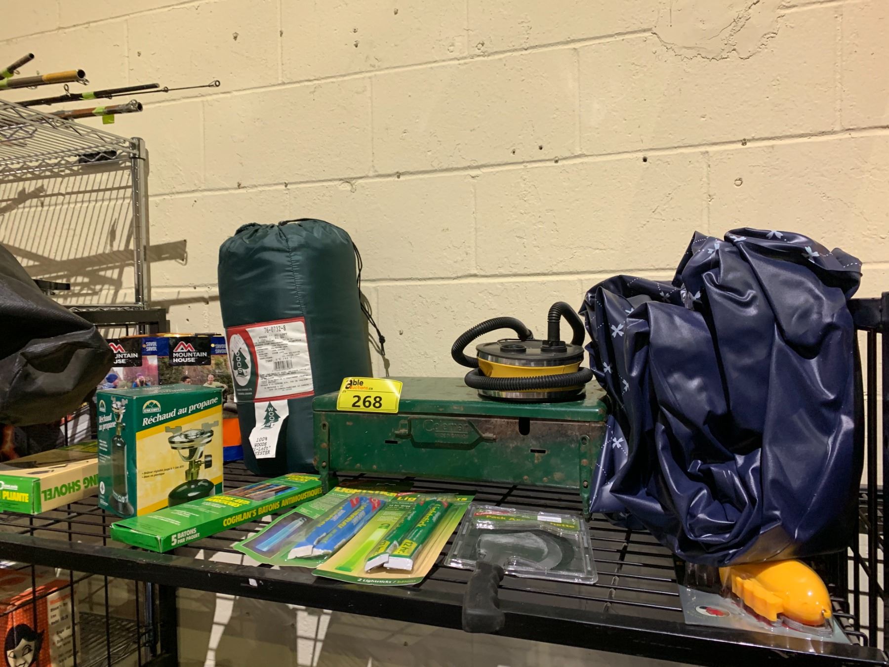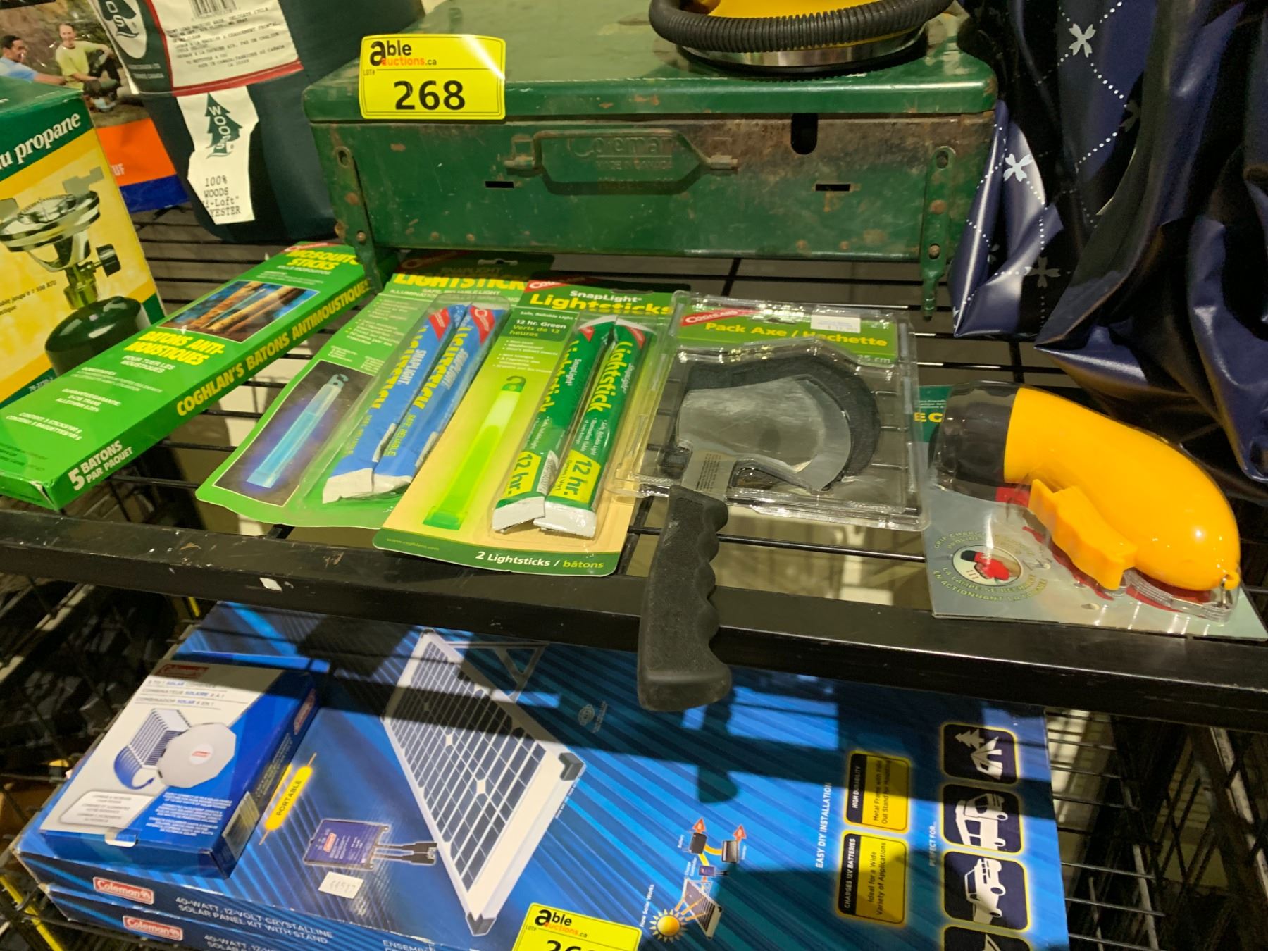 PORTABLE PROPANE GRILL, HATCHET, INFLATABLE MATTRESS, MOSQUITO STICKS, LIGHT STICKS AND MORE