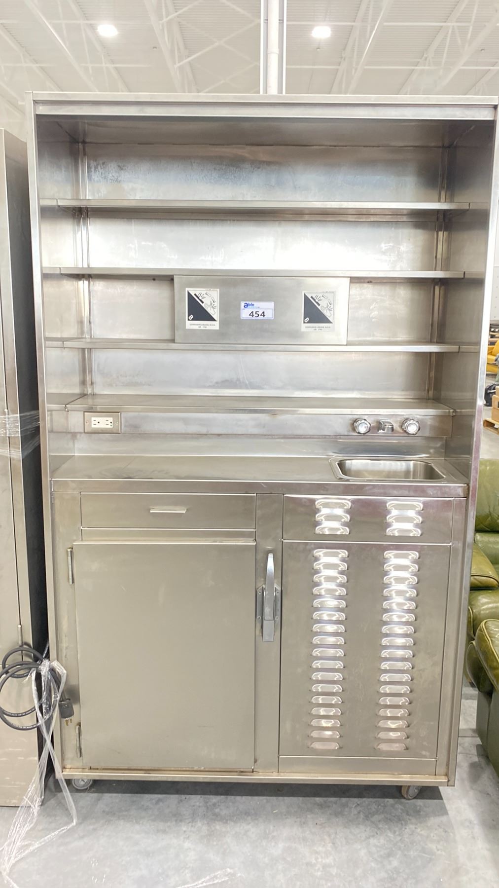 PORTABLE STAINLESS STEEL MULTI TIER CORROSIVE LIQUIDS STORAGE CABINET WITH POWER OUTLETS & SINK 48" X 20" X 80"H
