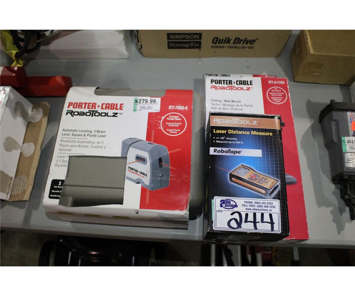 PORTER CABLE LASER LEVEL, MOUNTING BRACKET AND LASER DISTANCE MEASURER