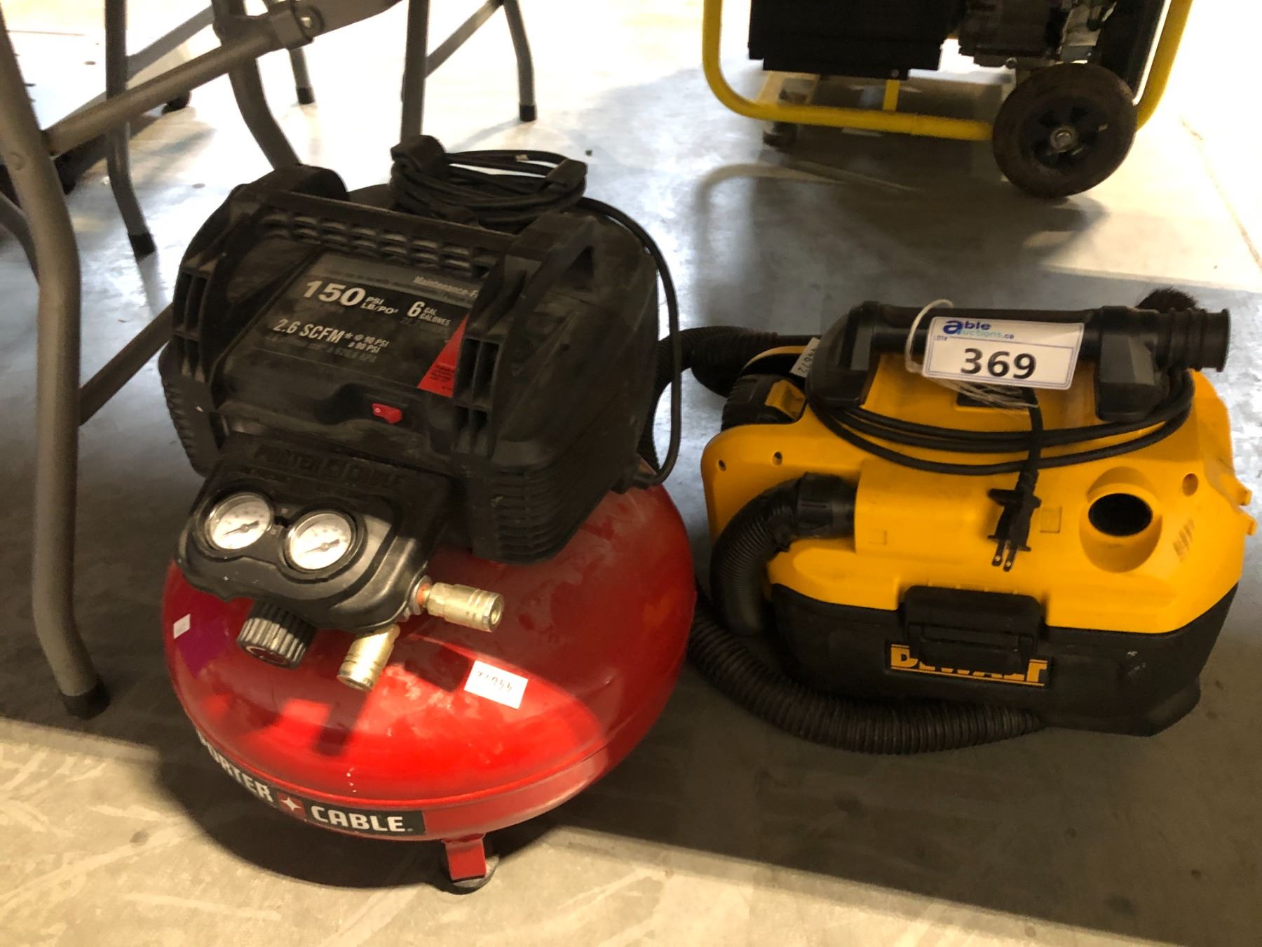 PORTER CABLE PANCAKE COMPRESSOR AND DEWALT DCV581H WET/DRY VACUUM
