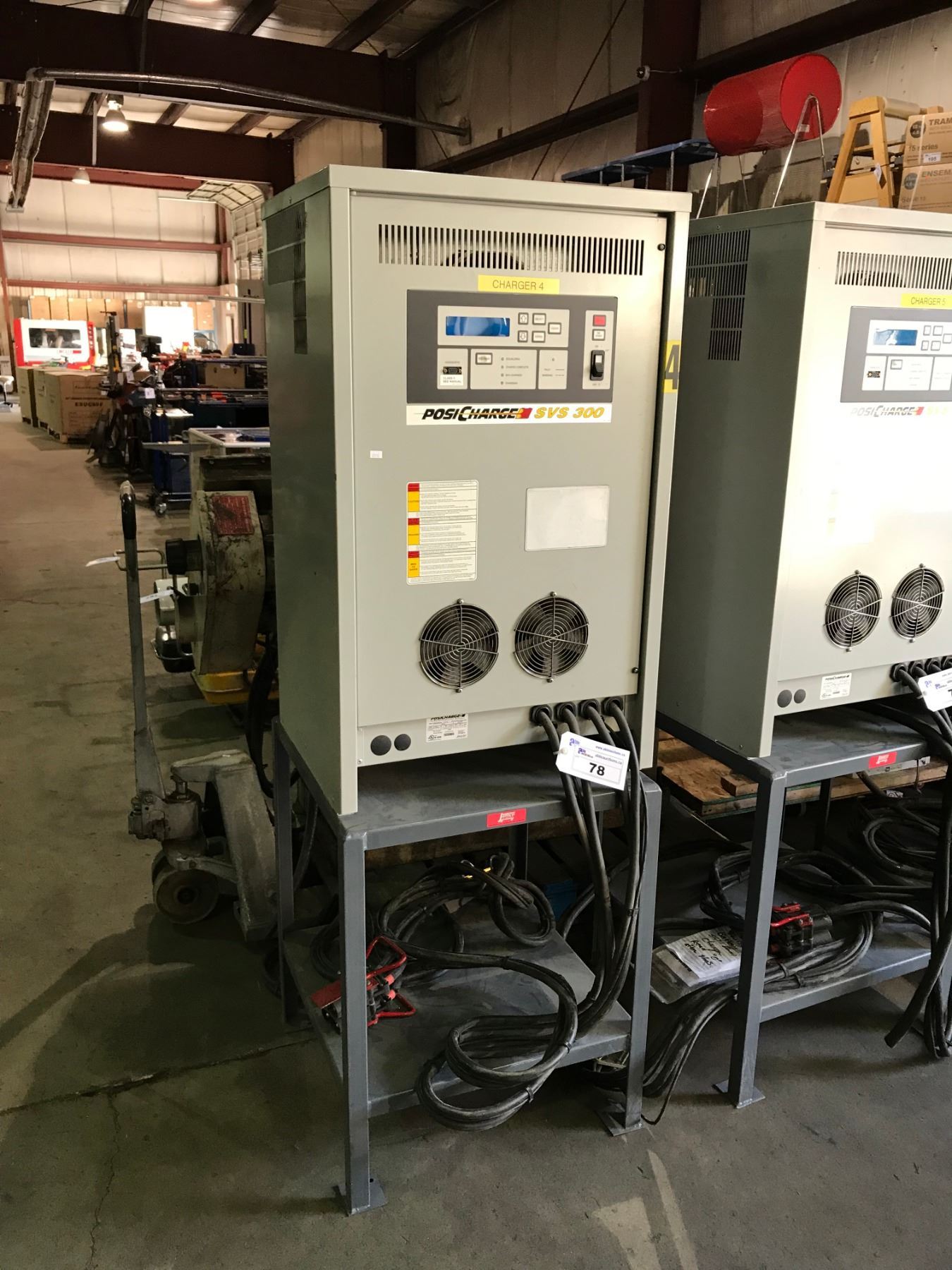 POSICHARGE SVS 300 DIGITAL 3 PHZ 480/600V FORKLIFT MULTI CHARGER ON JAMCO METAL STAND