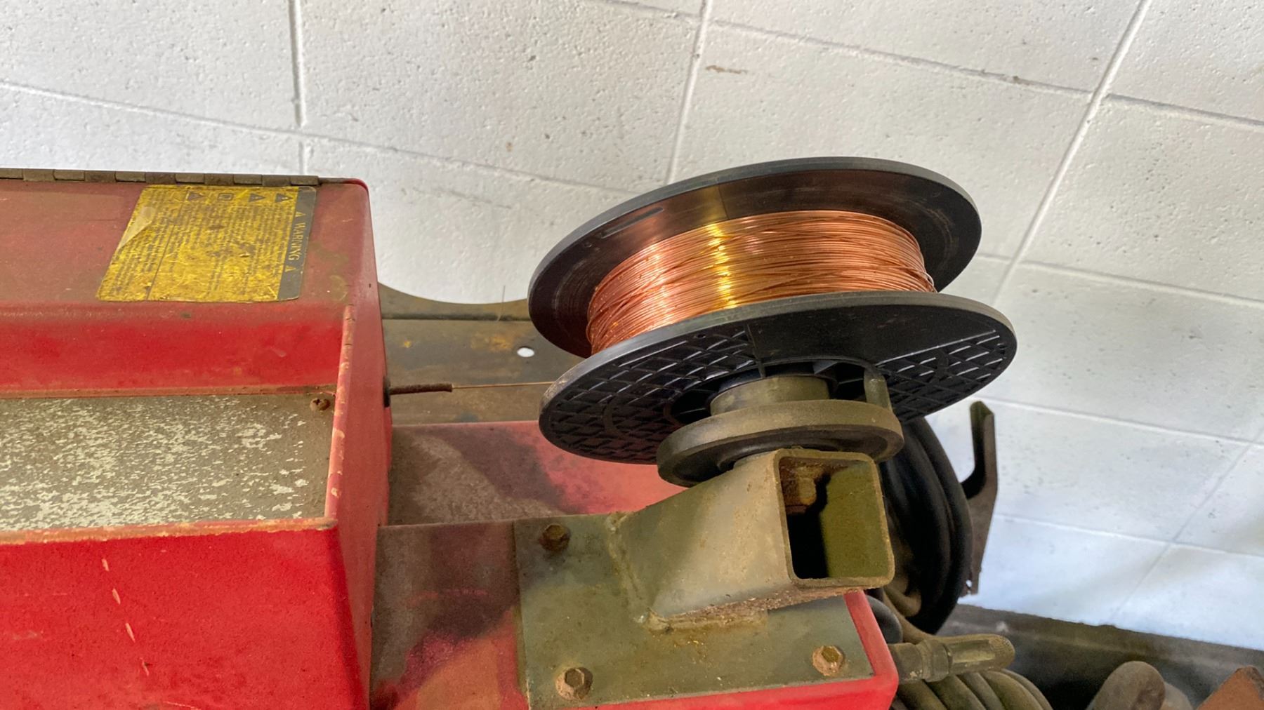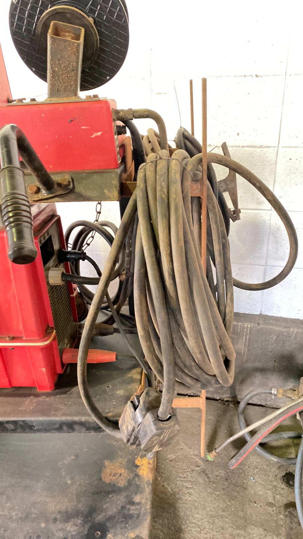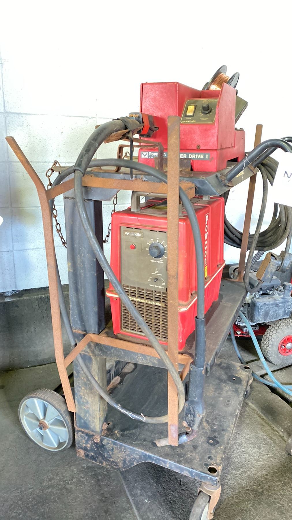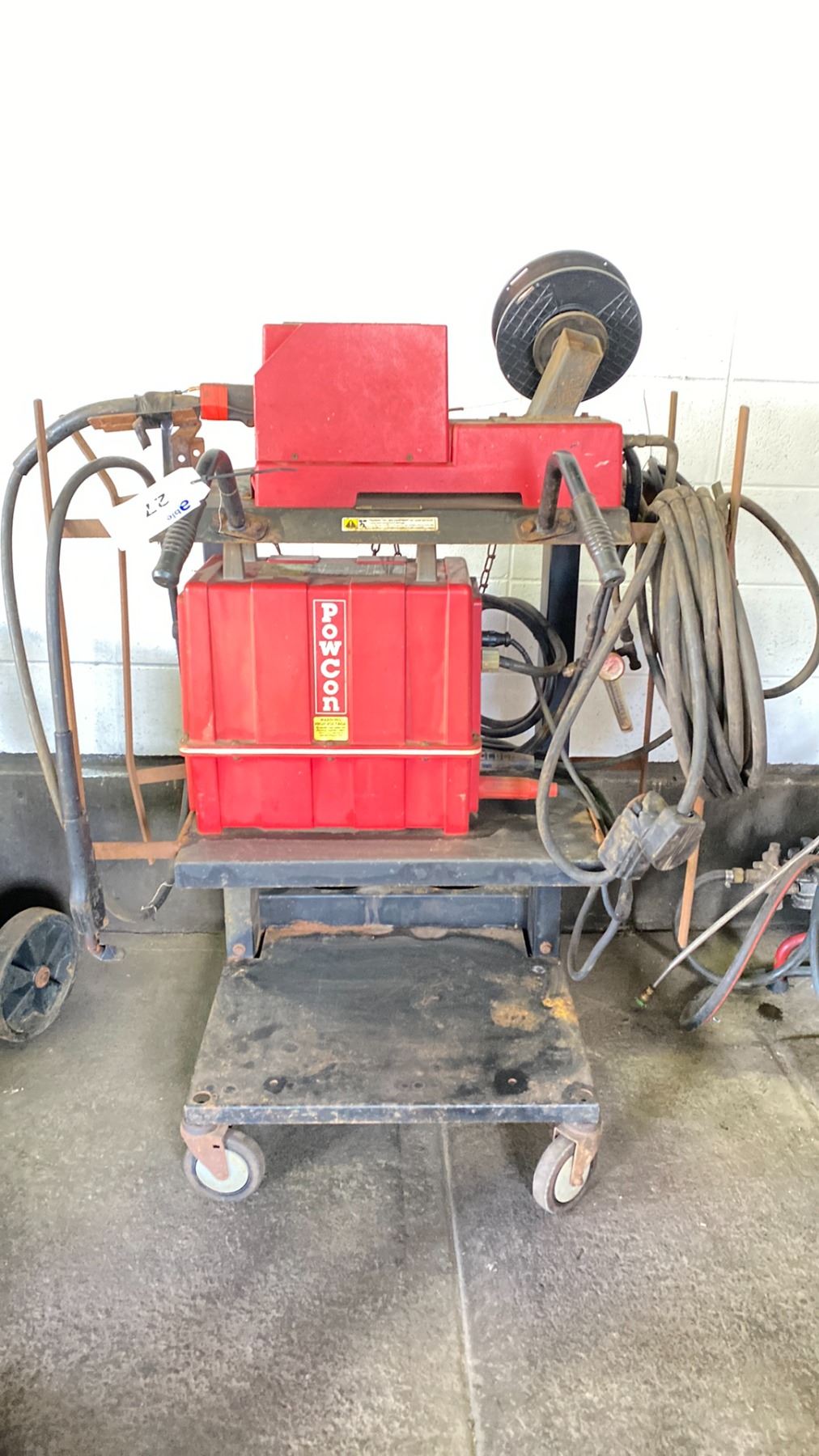 POWCON 200SM WIRE FEED MIG WELDER ON ROLLING CART. NO BOTTLES. SINGLE PHASE
