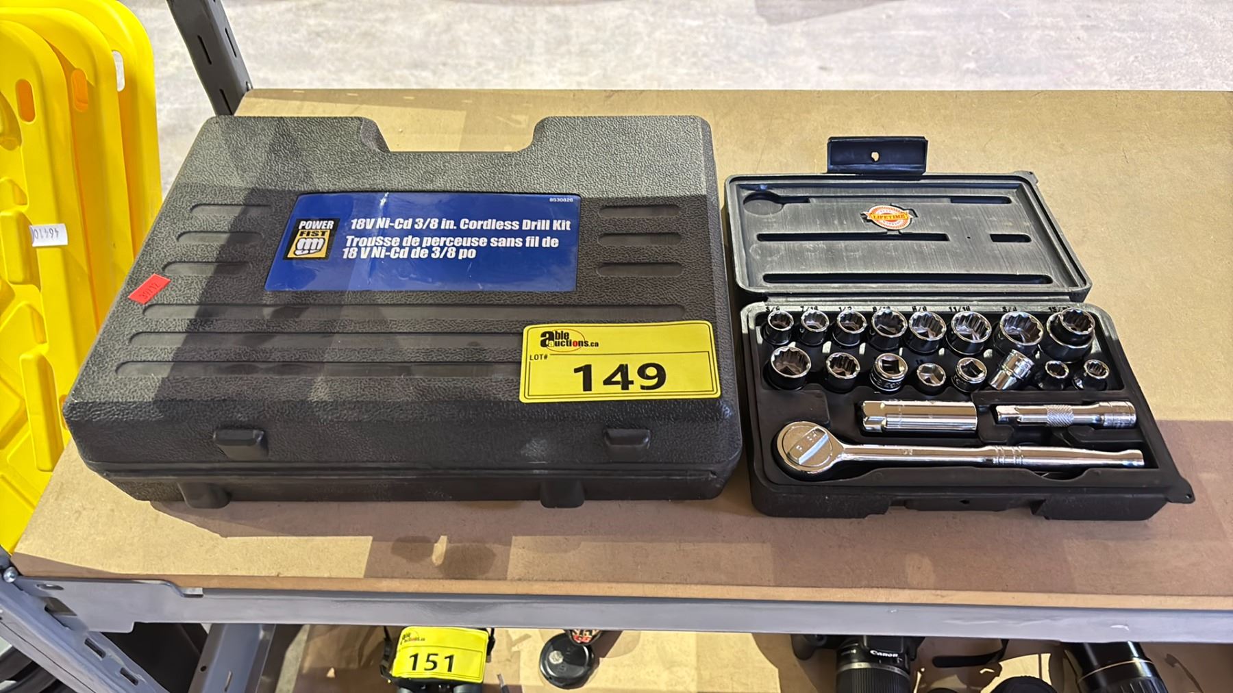 POWER FIST 18V NI-CD 3/6" CORDLESS DRILL KIT & ACE RATCHET SET