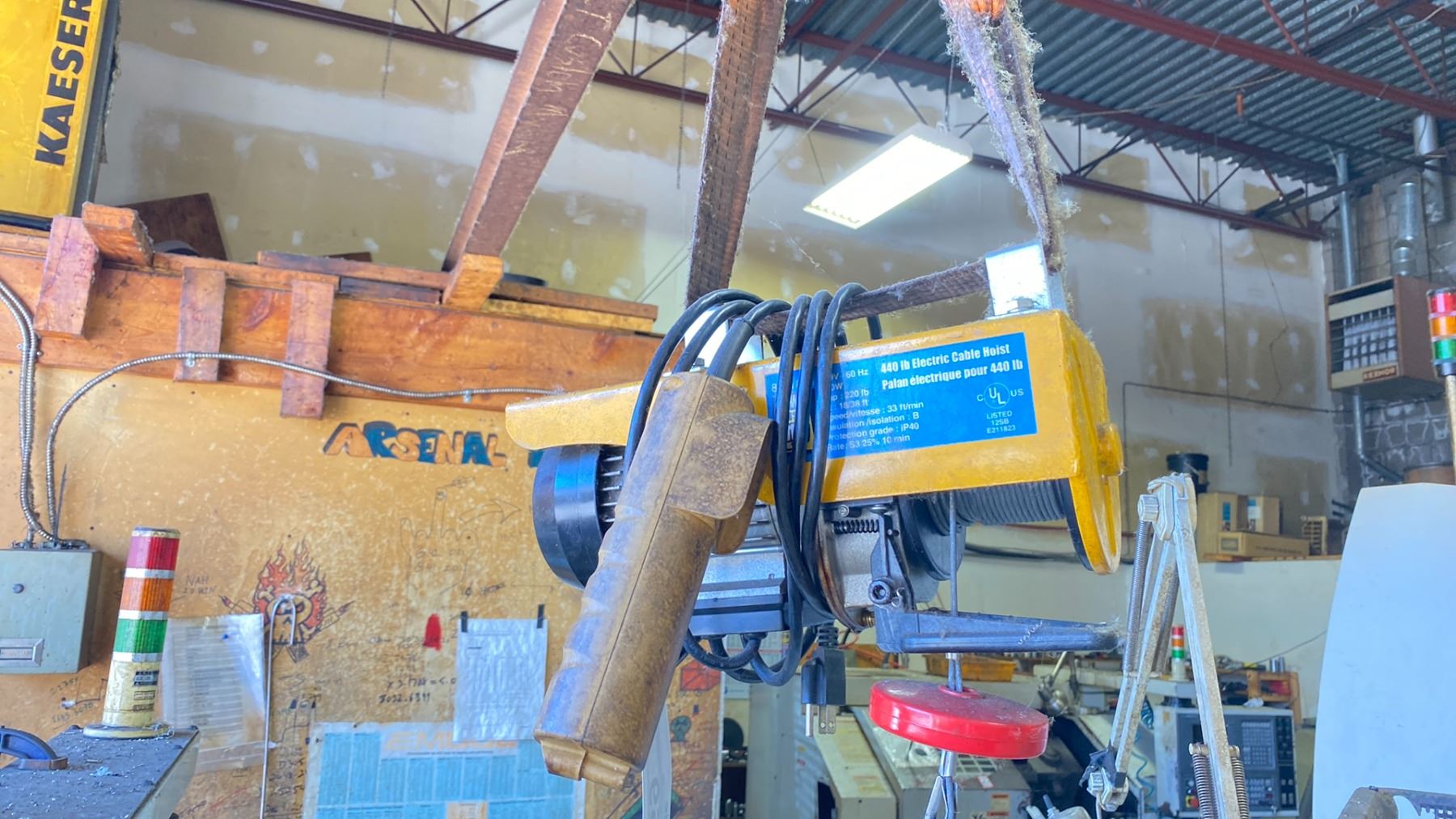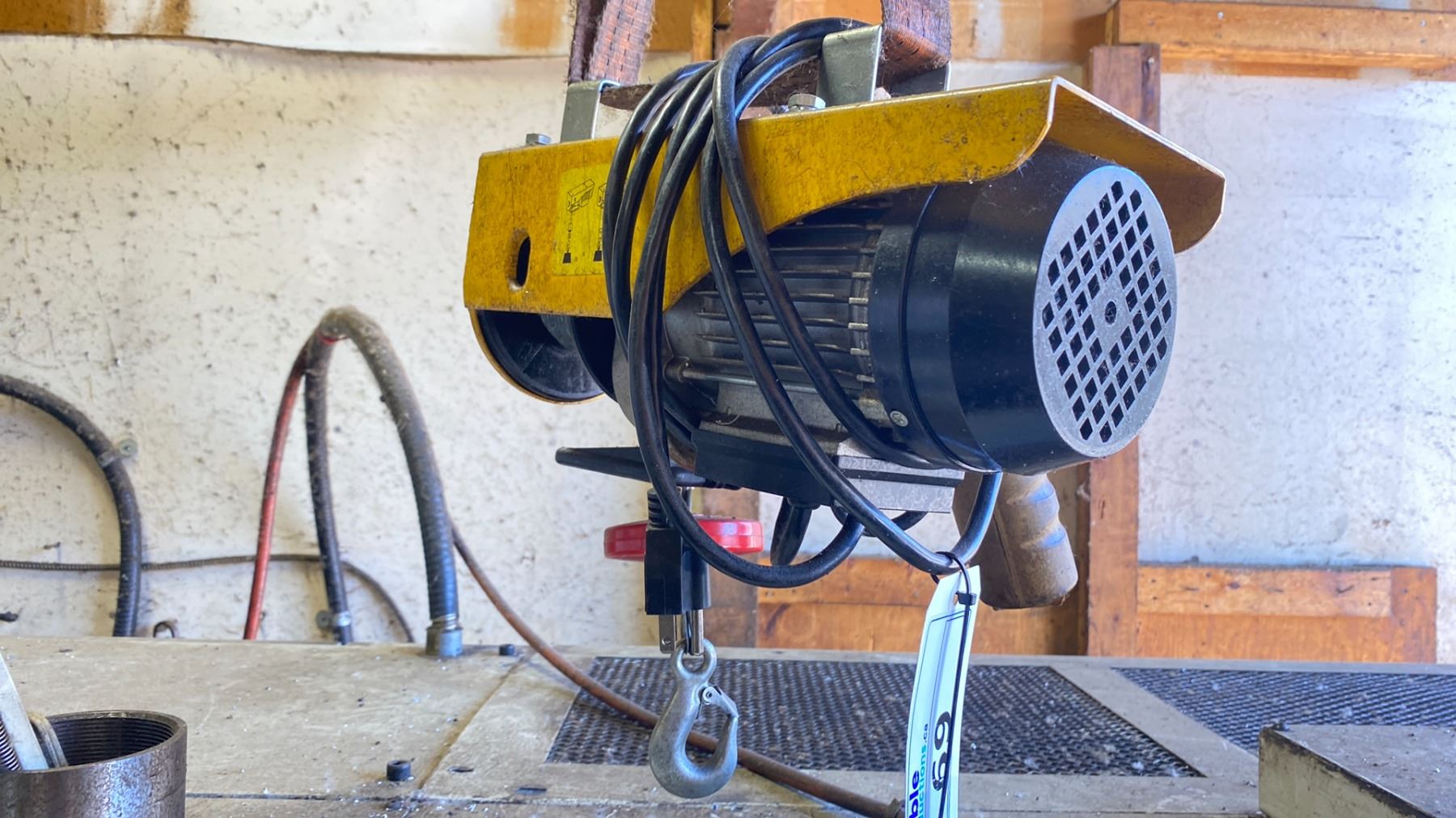 POWER FIST ELECTRIC HOIST 220 LBS CAP. 33 FT PER MIN COME WITH STEEL BEAM *PROPER TOOLS AND EQUIPMENT REQUIRED FOR REMOVAL