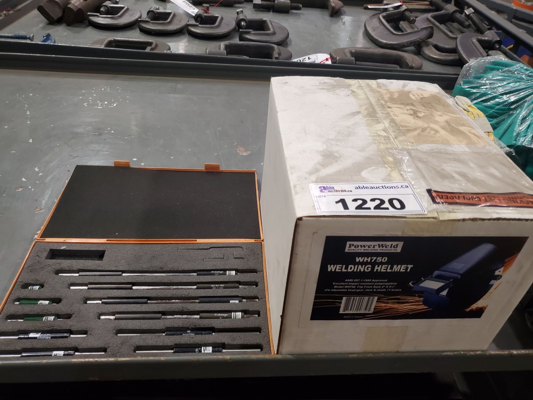 POWER WELD WH750 WELDING HELMET, AND MITUTOYO INSIDE MIC SET 2-40"
