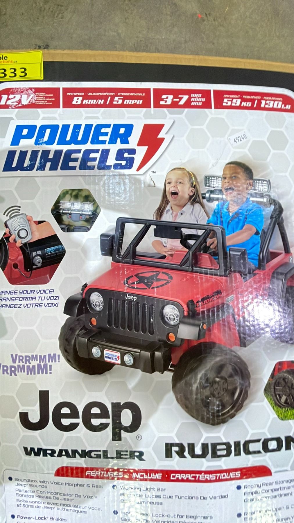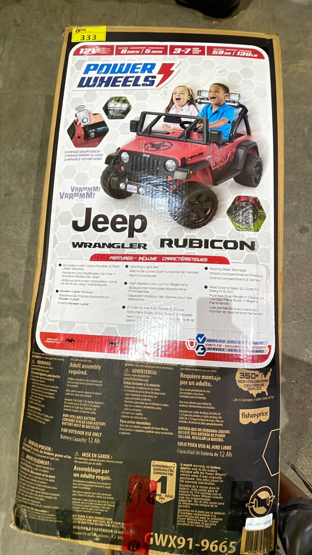 POWER WHEELS JEEP WRANGLER RUBICON RIDE-ON KIDS CAR (UNKNOWN WORKING CONDITION, MAY BE MISSING PIECES)