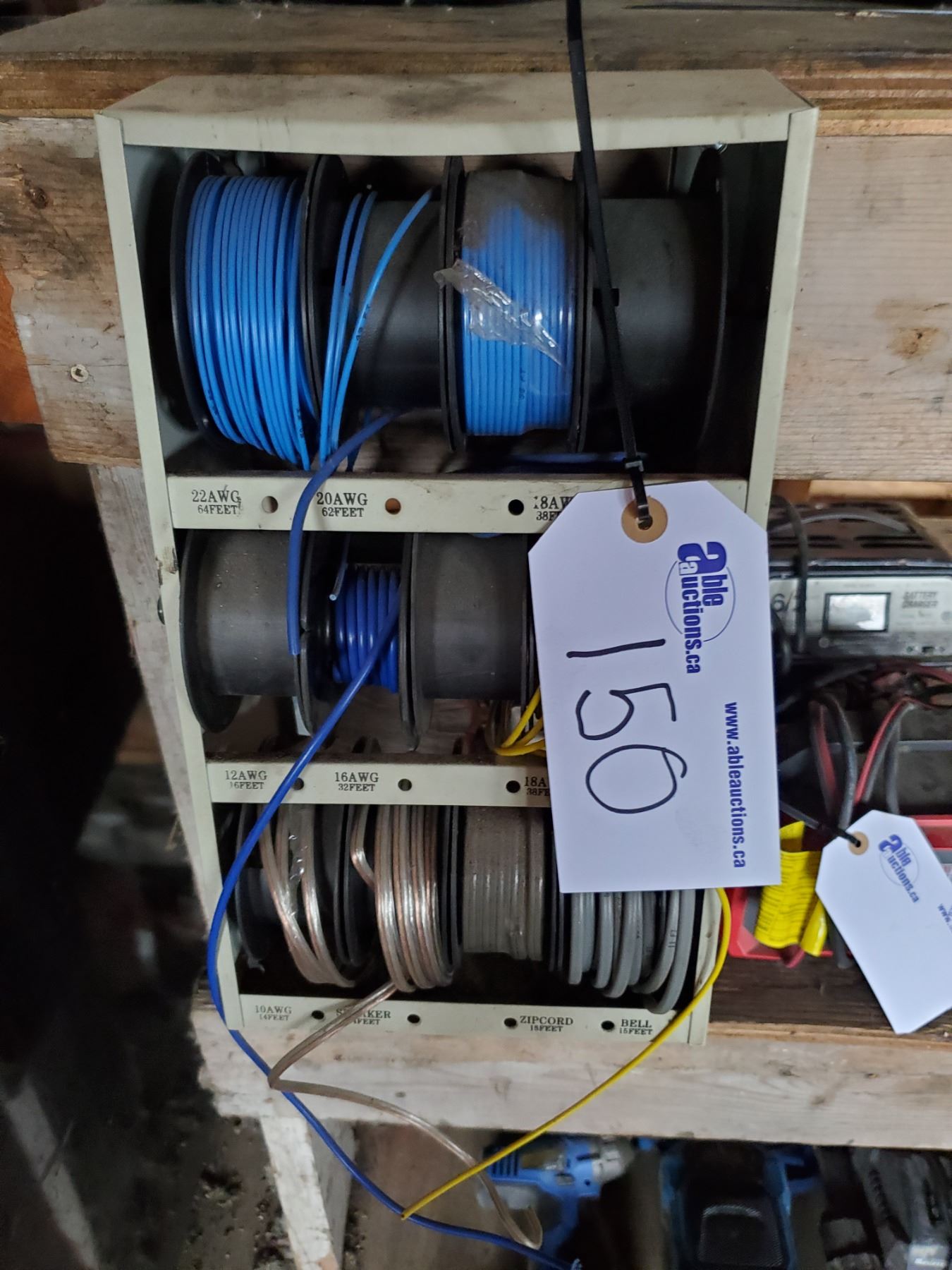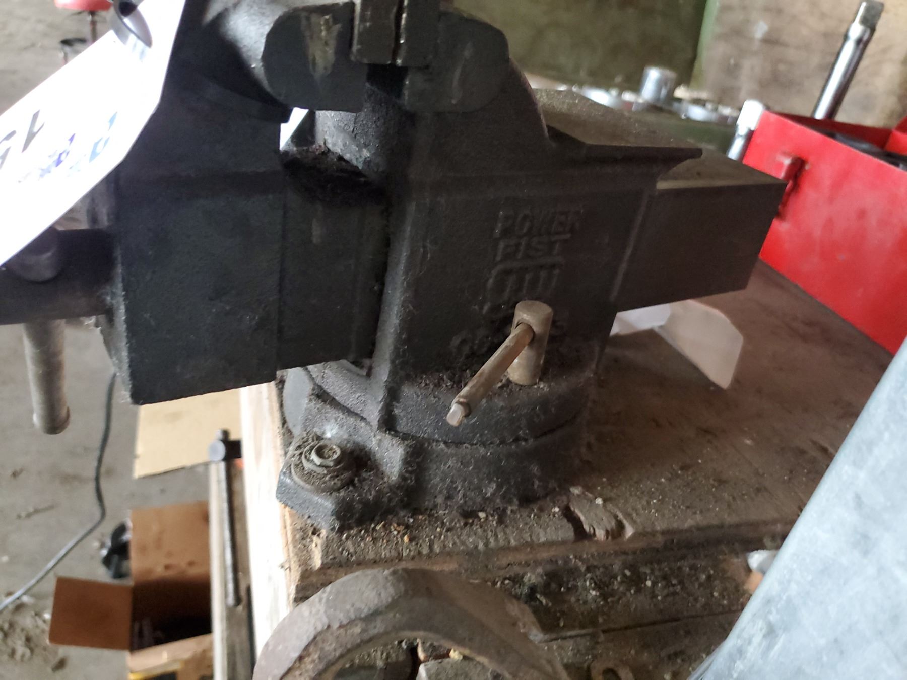 POWERFIST SMALL INDUSTRIAL BENCH VISE & 3 TIER WIRE SPOOL HOLDER WITH WIRE