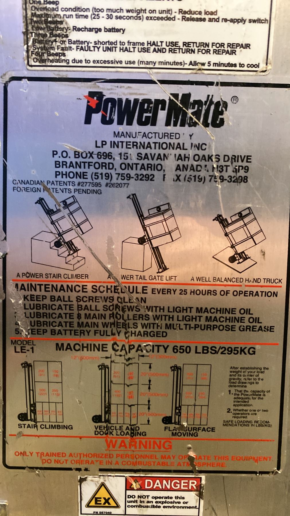 POWERMATE STAIR CLIMBING DOLLY. BATTERY POWERED NEEDS NEW BATTERY