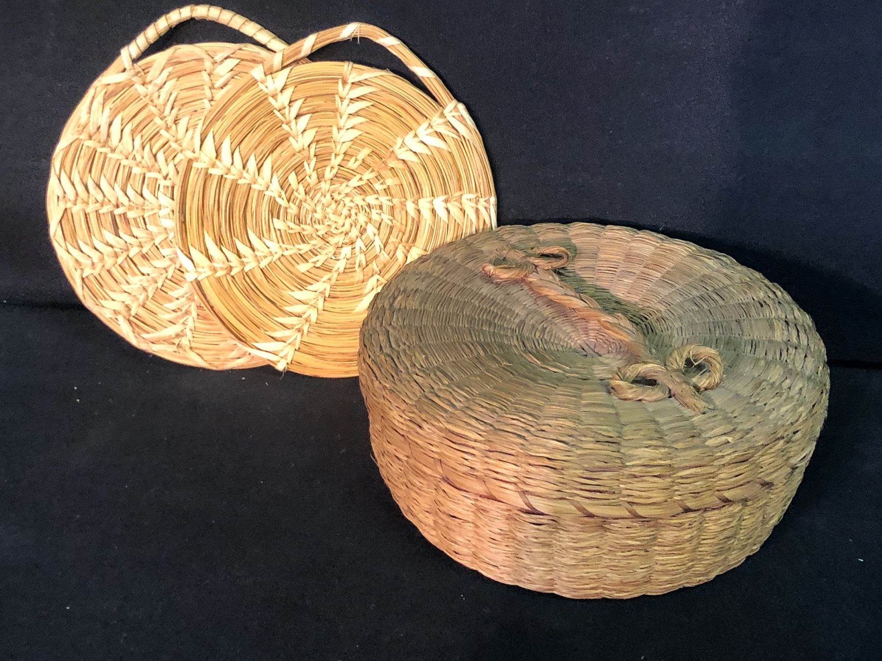 PRAIRIE NATIVE SWEET GRASS HAND WOVEN LIDDED BASKET WITH 2 COASTERS, APPROX. 7.5" WIDE