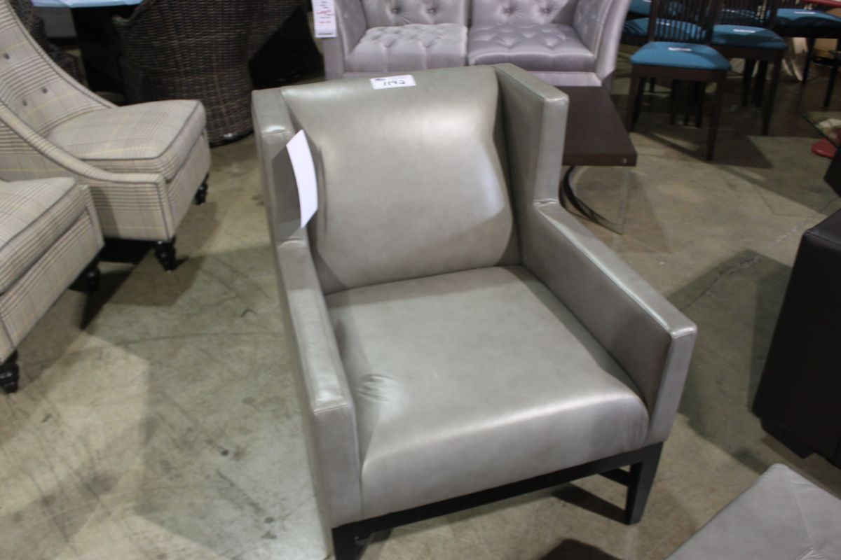 PRENTIS GREY LEATHER MODERN WINGBACK CHAIR