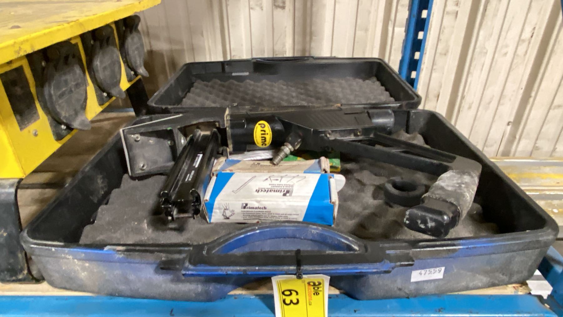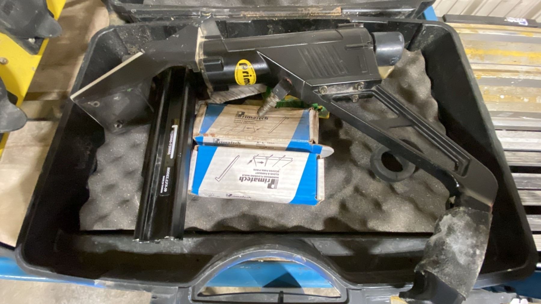 PRIME LFN-50 PNEUMATIC FLOORING NAILER IN HARD TRANSPORT CASE WITH 2 BOXES OF FLOORING NAILS
