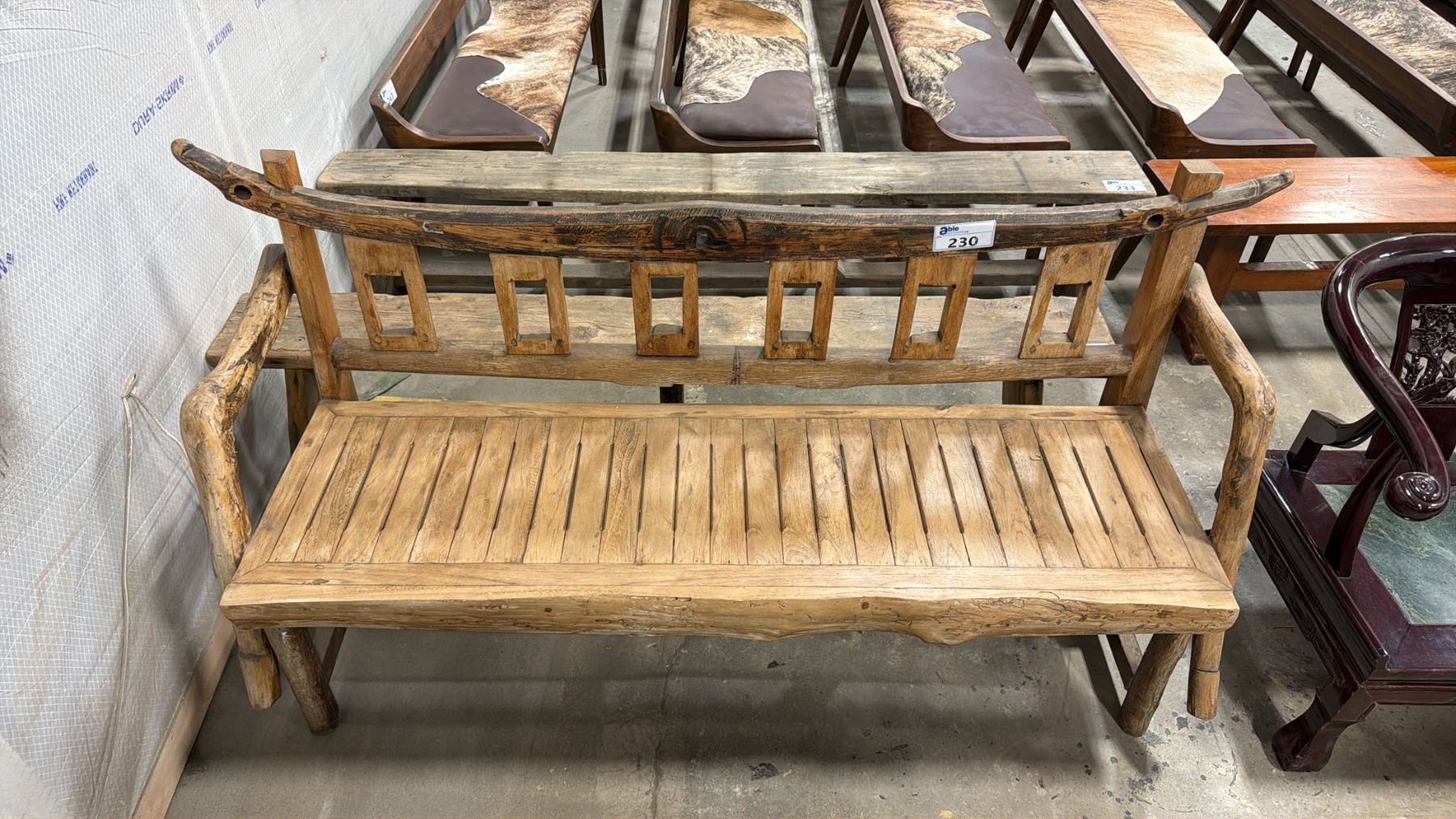 PRIMITIVE RUSTIC WOODEN ASIAN BENCH SEAT