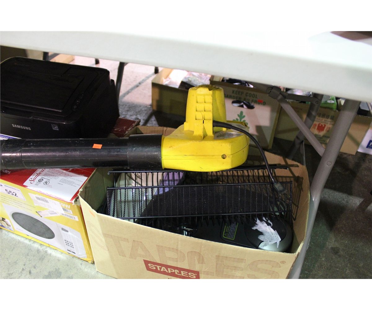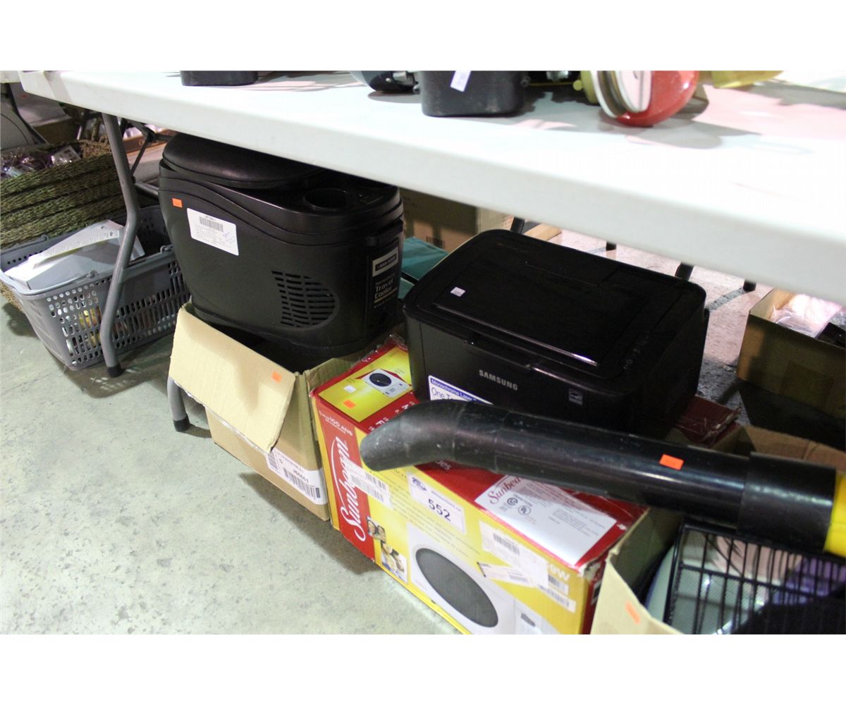 PRINTER, MICROWAVE AND ASSORTED HOUSE HOLD ITEMS