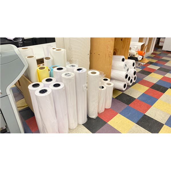 PALLET OF ASSORTED COMMERCIAL PRINT SHOP ROLLS OF PAPER / PAPER STOCK