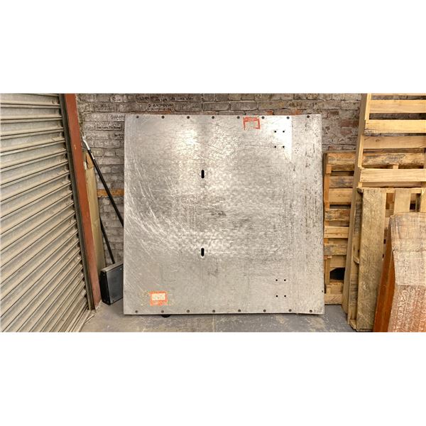 CONTENTS OF LOADING DOCK INCLUDING: LARGE ALUMINUM 60"W DOCK PLATE, 4 MOBILE WOODEN CARTS &