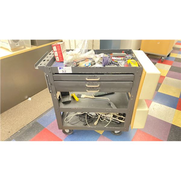 BLACK METAL 3 TIER 3 DRAWER MOBILE TOOL / TECH CART WITH ASSORTED TOOL CONTENTS