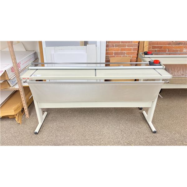 WHITE WOODEN / METAL 73"W X 29"D X 32"H COMMERCIAL MOBILE LAYOUT TABLE WITH PRINT SHOP ROLL SPINE