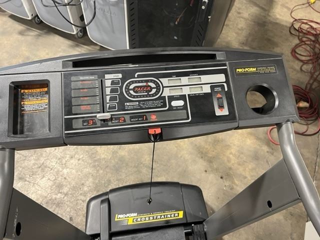 PRO-FORM CROSSTRAINER STRENGTH / AEROBIC ELECTRIC TREADMILL WITH BUILT-IN WEIGHT BENCH & ASSORTED HAND WEIGHTS