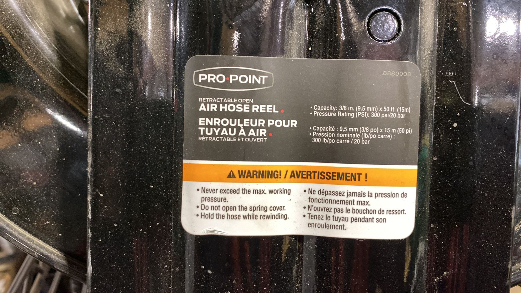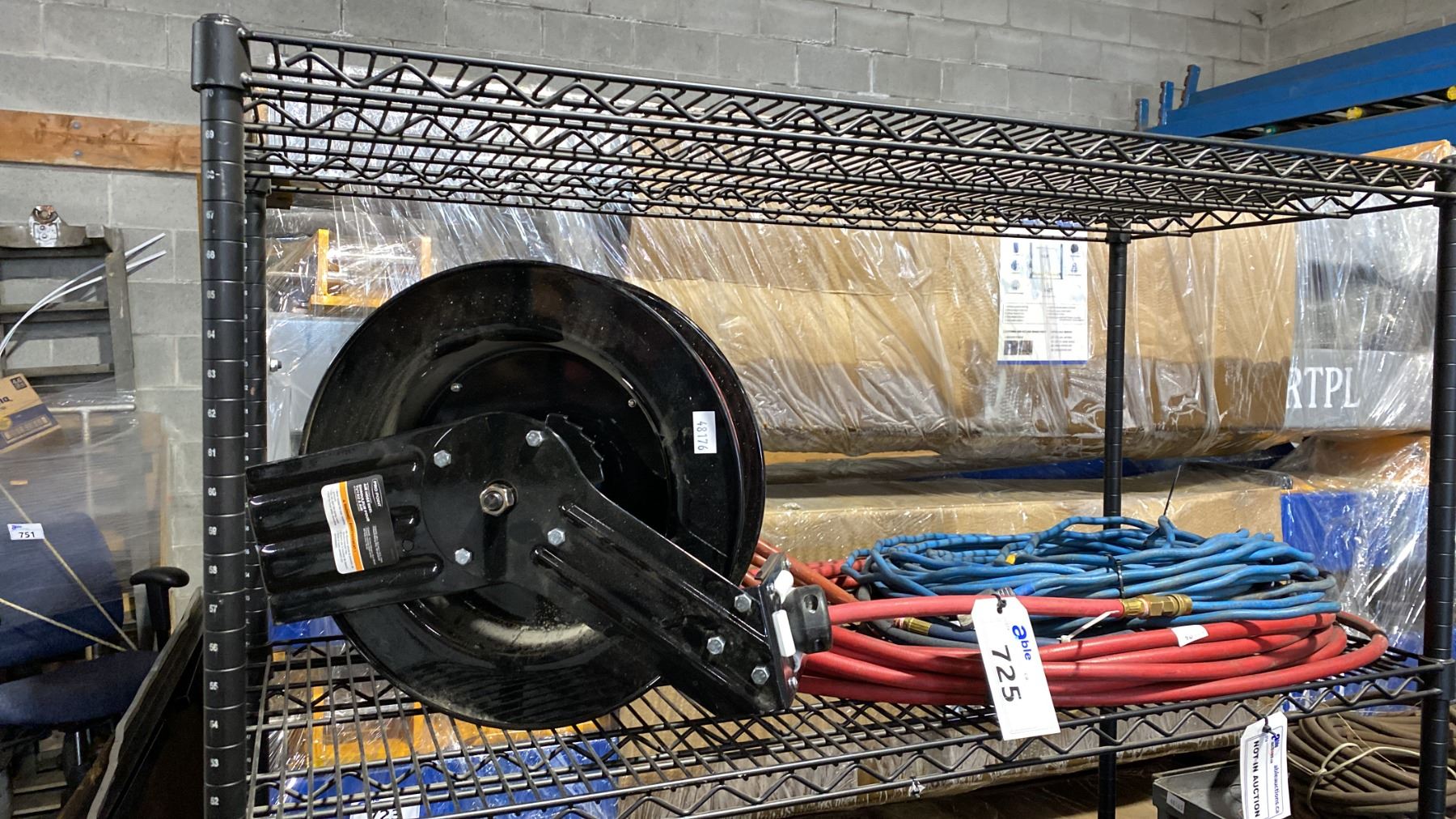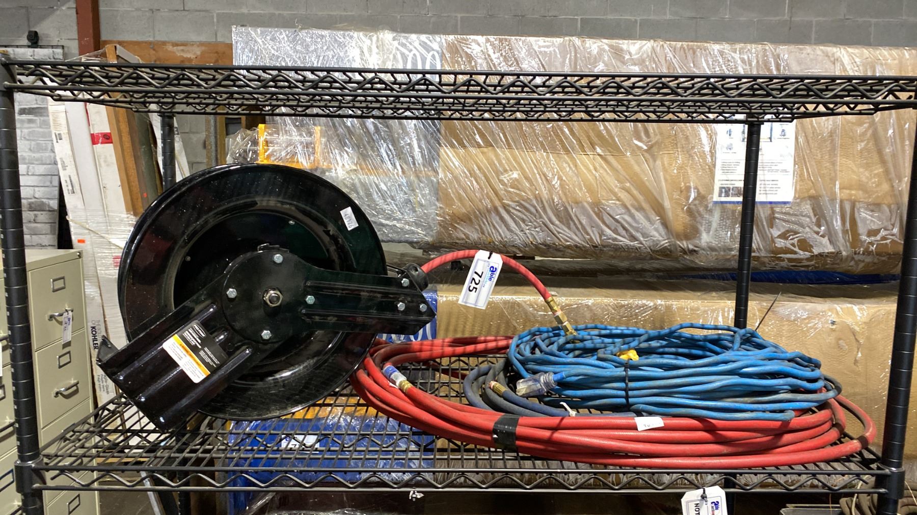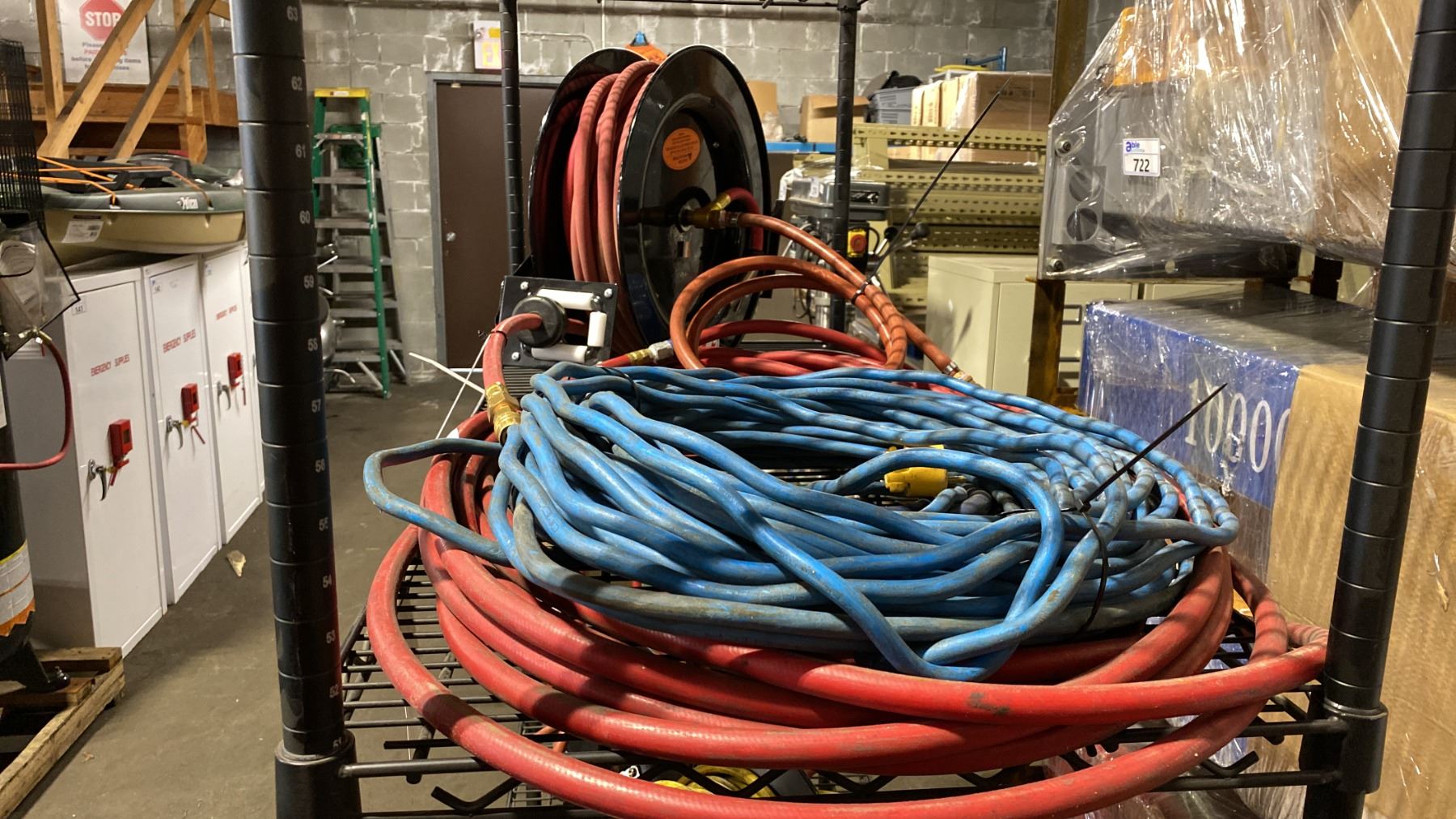 PRO POINT AIR HOSE REEL, BLUE EXTENSION CORD & RED AIR HOSE LINE