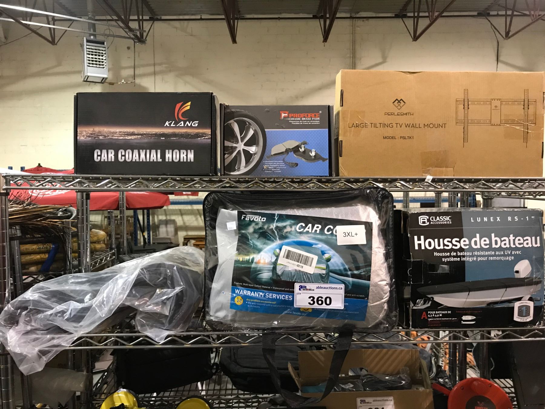 PROFORCE BRAKE PADS, KLAND CAR COAXIAL HORN, LARGE TILTING TV WALL MOUNT, CAR COVER, BOAT COVER