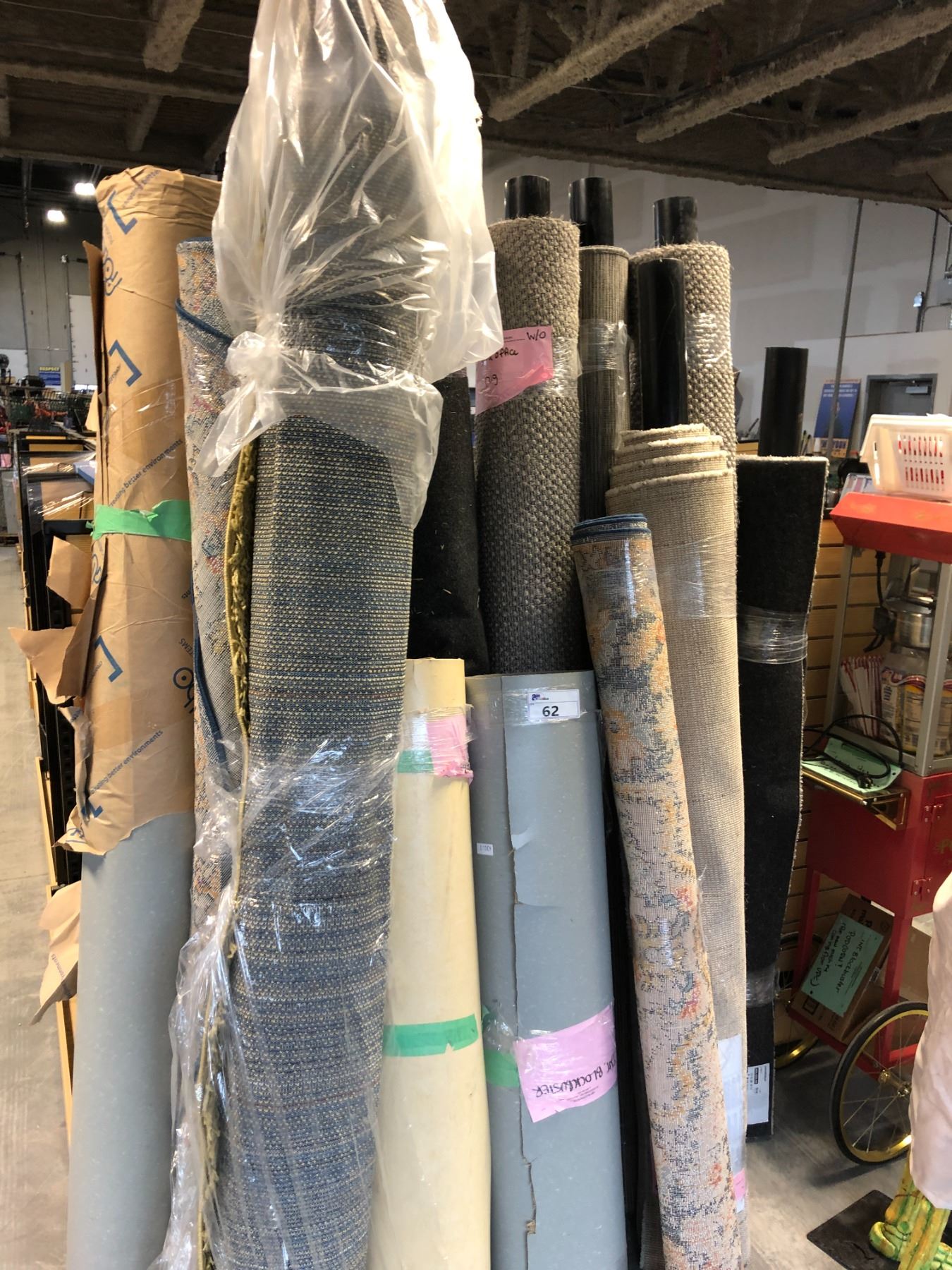 PROP LOT OF 13 ASSORTED ROLLS OF CARPET AND FLOORING - MUST TAKE ALL