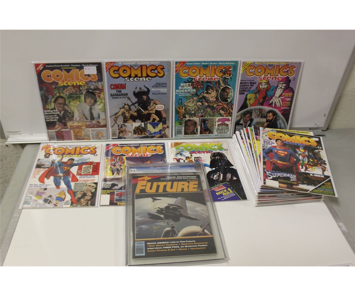 PROZINE MAGAZINES LOT + CGC.  COMICS SCENE, 13 ISSUES BETWEEN #1-34.  #1 STAN LEE PHOTO COVER (1981), STAR BATTLES 2 70'S ISSUES, FANGORIA 9 ISSUES BETWEEN #186-202 HIGH GRADE AVERAGE & FUTURE MAGAZINE #1 CGC 9.6 (NM+) WHITE PAGES (4/78) *SINGLE HIGHEST GRADED COPY ON THE PLANET*