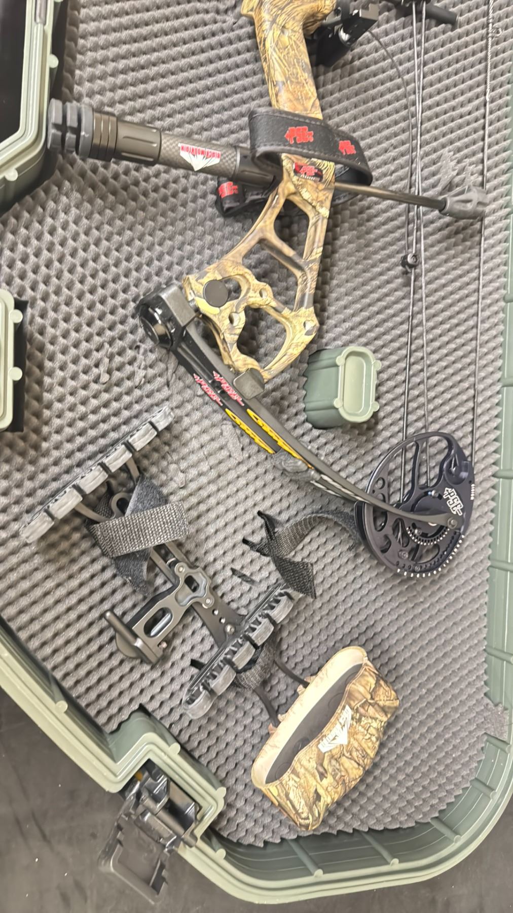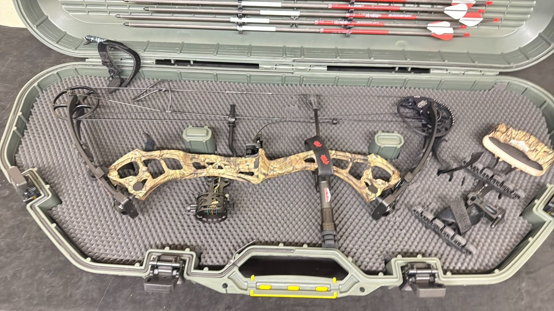 PSE STINGER MAX COMPOUND BOW WITH CASE AND ARROWS