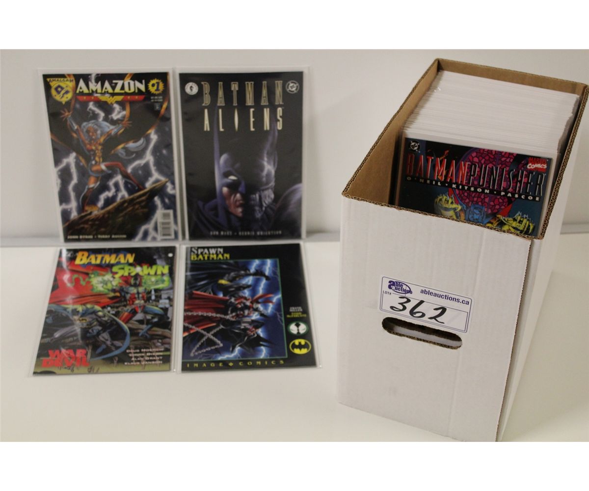 PUBLISHER X-OVERS SHORT BOX (1990'S) INCLUDES 8 MINI SERIES, 20 ONE-SHOTS + MORE! BATMAN/ PUNISHER, SUPERMAN/ ALIENS, CONA RUNE, ETC. HIGH GRADE, NM AVERAGE