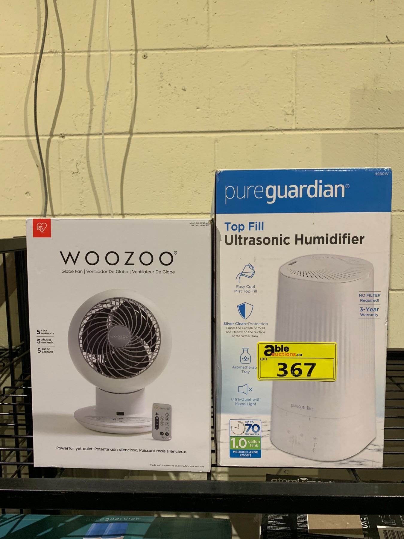 PUREGUARDIAN TOP FILL ULTRASONIC HUMIDIFIER & WOOZOO GLOBE FAN
