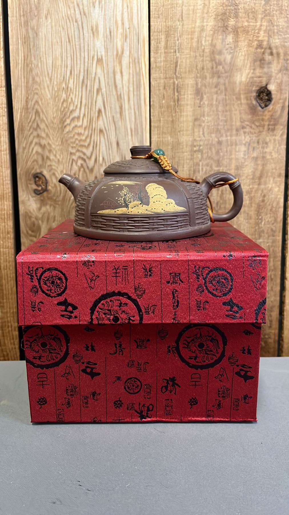 PURPLE CLAY TEAPOT IN CASE