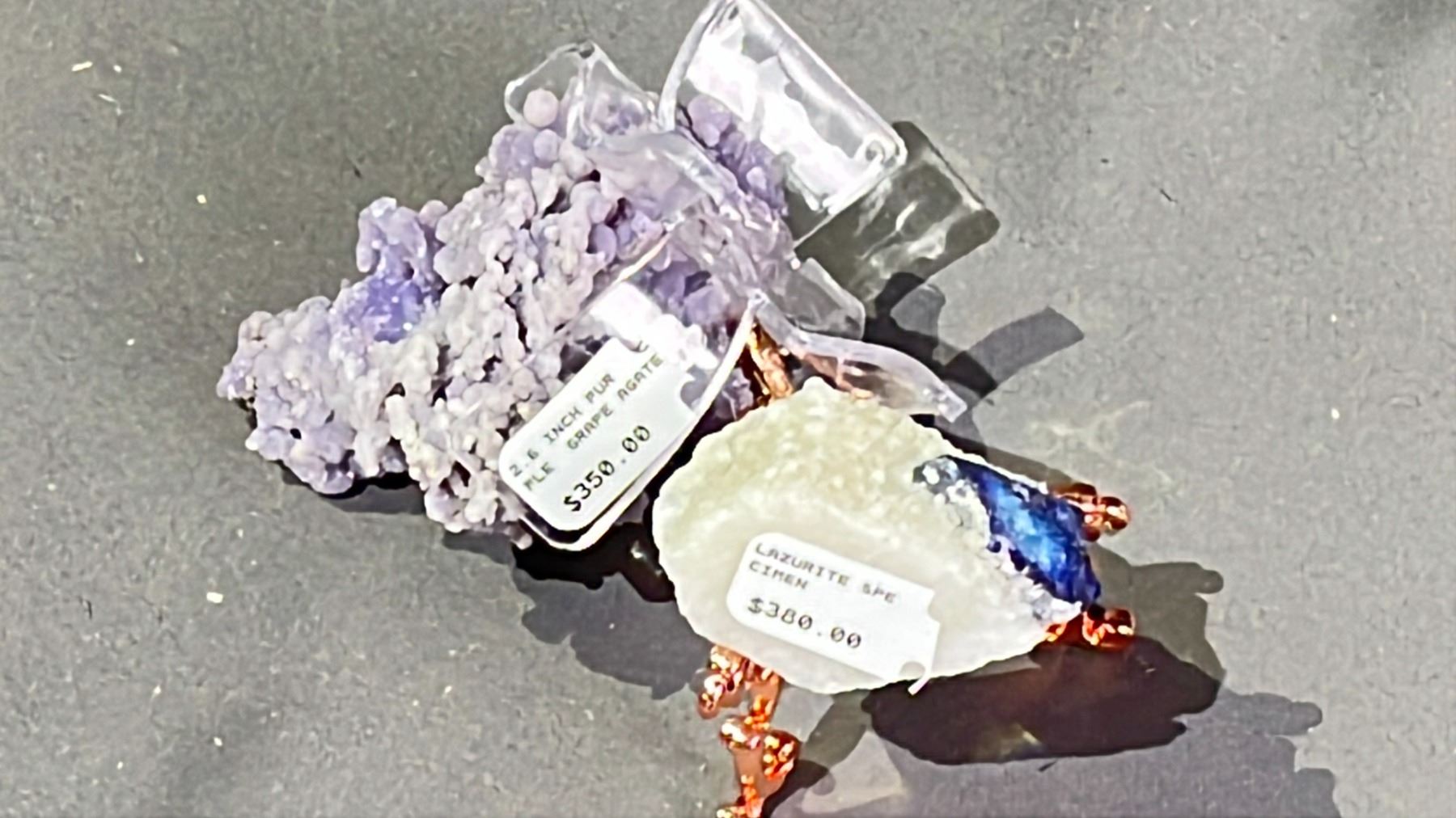 PURPLE GRAPE AGATE APPROX 2.6" RETAIL $350 AND LAZURITE SPECIMEN RETAIL $380