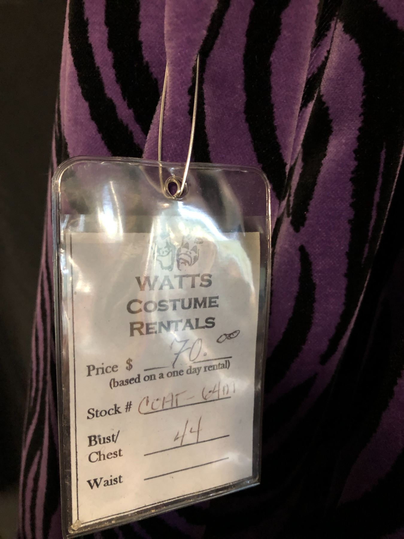 PURPLE STRIPE MAC DADDY COSTUME, DAILY RENTAL $75.00