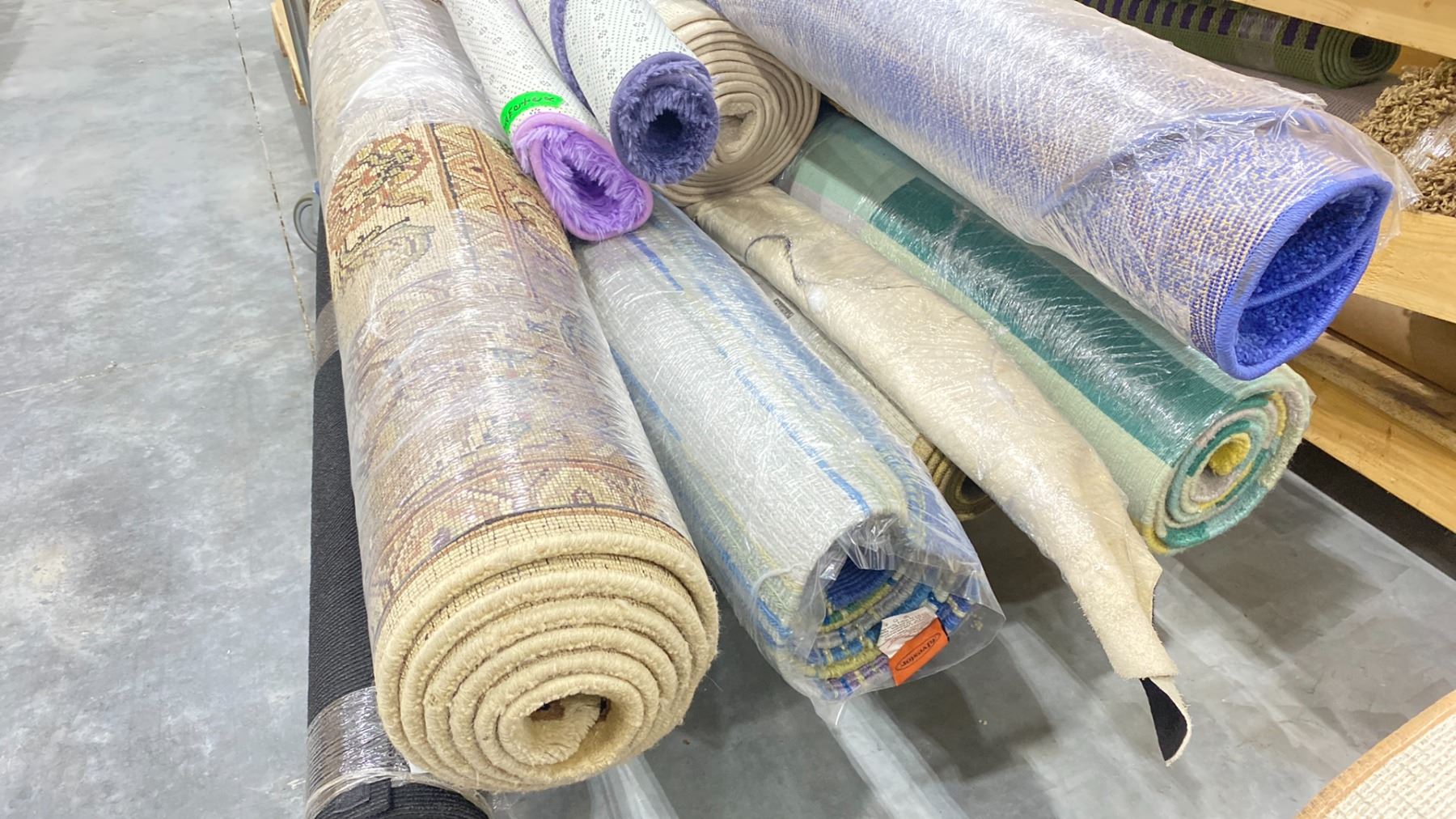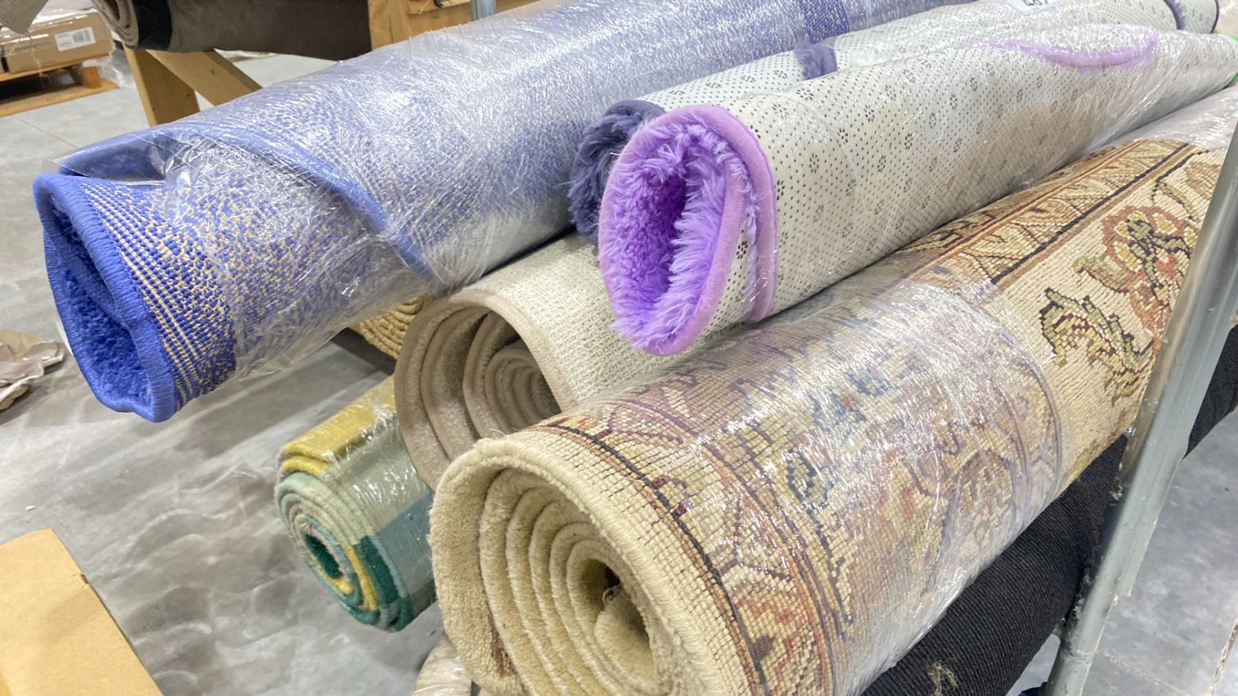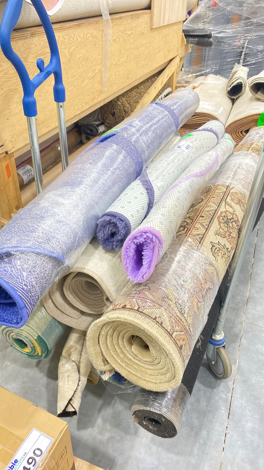 PUSH CART WITH ASSORTED AREA RUGS (CART INCLUDED & MUST BE TAKEN)