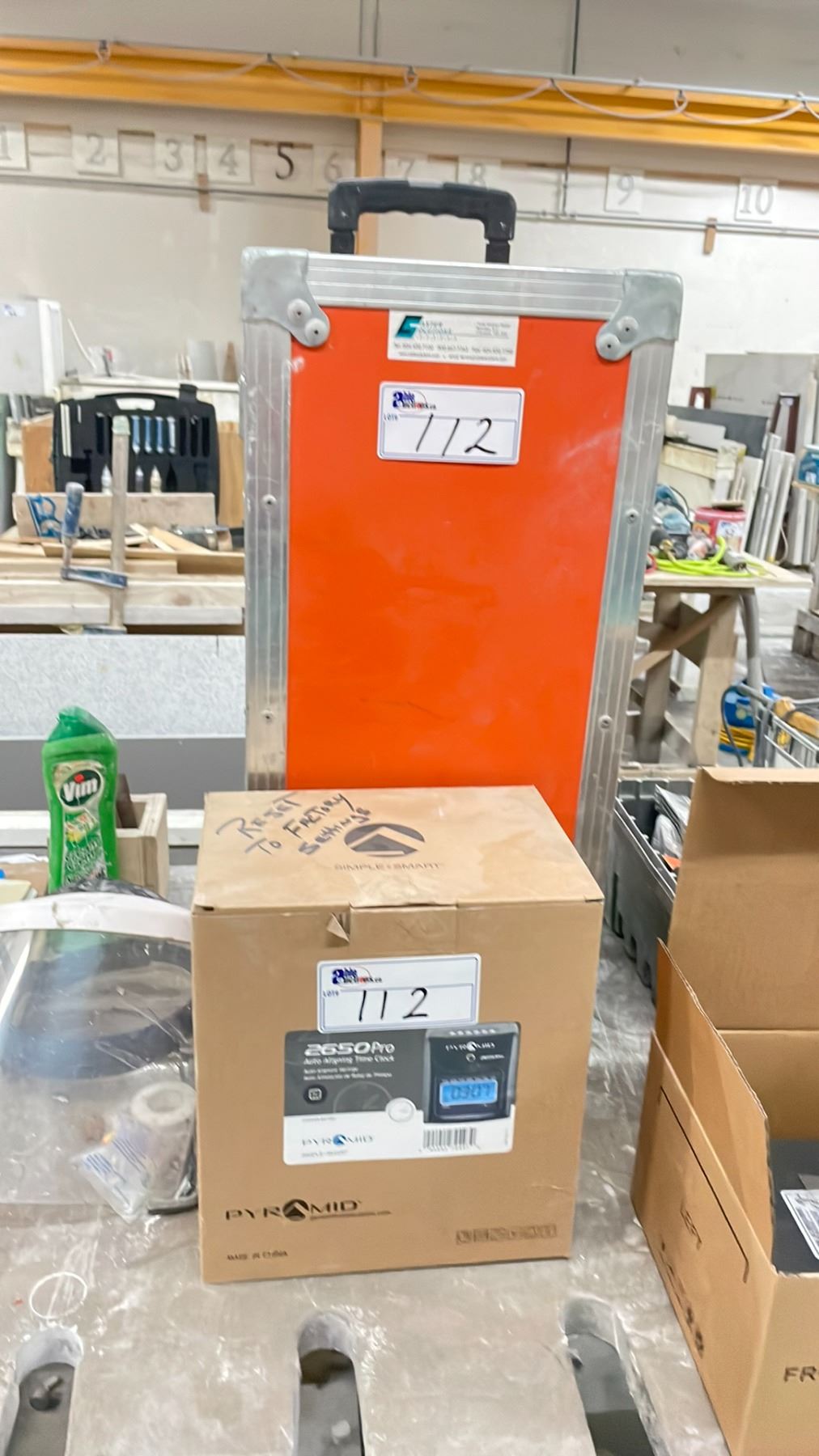 PYRAMID 2650PRO AUTO ALIGNING DIGITAL TIME CLOCK *RESET TO FACTORY SETTING* & ORANGE 26"W X 12"D X 9 1/2"H MOBILE TOOL TRANSPORT CASE *NO CONTENTS*