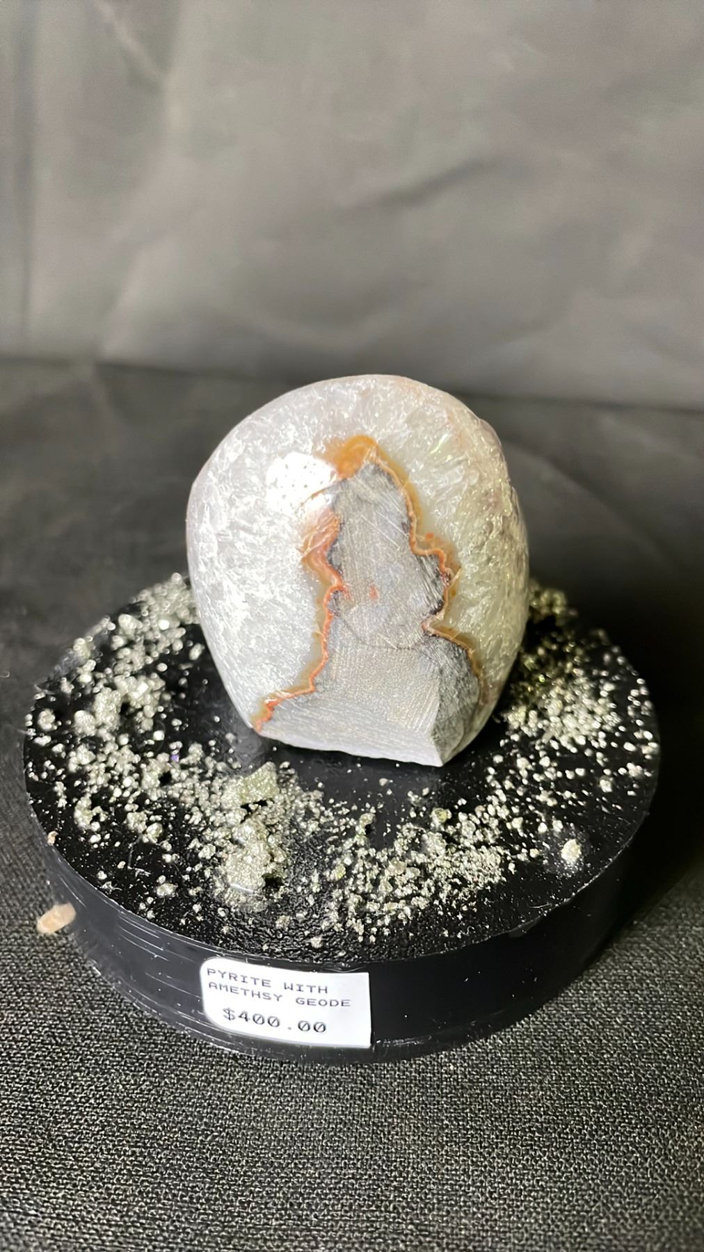 PYRITE WITH AMETHYST GEODE RETAIL $400