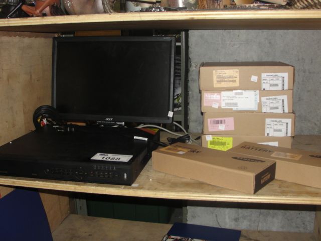 QSEE 16CHANNEL SECURITY DVR WITH ACER MONITER, 2 SAMSUNG BATTERIES, AND 4 BOXES OF COMPUTER MOTHER BOARDS