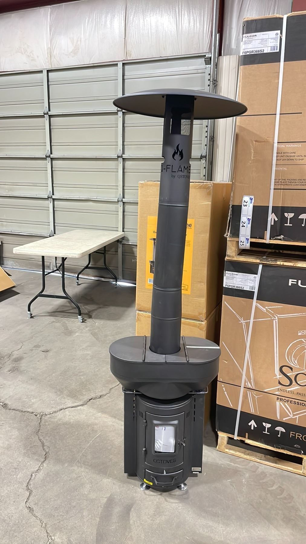 QSTOVES Q-FLAME Q05X BLACK OUTDOOR WOOD PELLET PATIO HEATER *IN BOX*