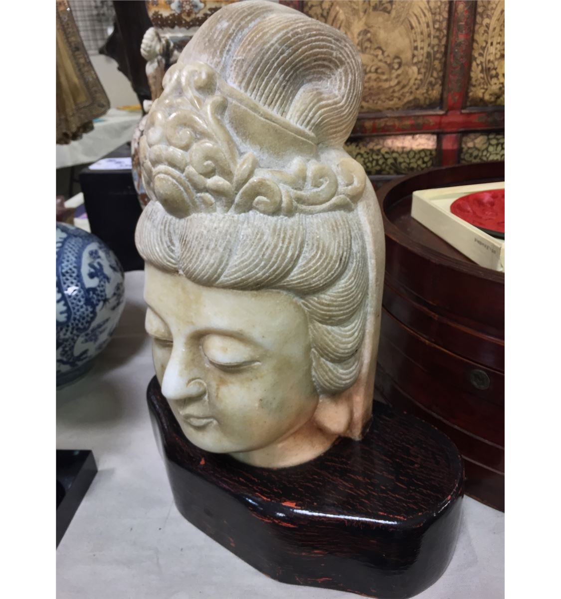 QUALITY ASIAN MARBLE BUST ON STAND