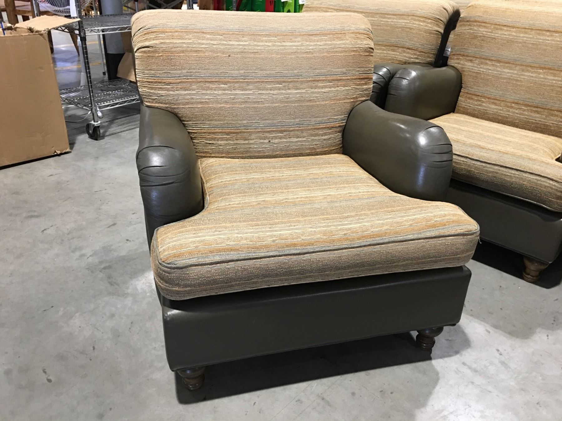 QUALITY EASY CHAIR - NEUTRAL TONE WITH GOLD FLECKED FABRIC - SPINNEYBECK LEATHER & MAPLE HARDWOOD CONSTRUCTION - OWN A PIECE OF WICKANINNISH INN HISTORY - I