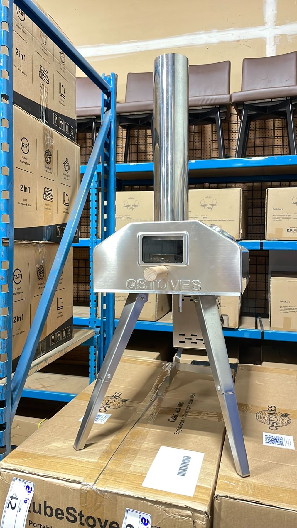QUBESTOVE 2 IN 1 STAINLESS STEEL 12.6" PROPANE PORTABLE OUTDOOR PIZZA OVEN & STOVE FULLY INSULATED WITH FOLDABLE/DETACHABLE LEGS, REACHES 538 DEGREES CELSIUS IN 10 MINS INCLUDES 12.6" ROTATING PIZZA STONE & HOSE *IN BOX*