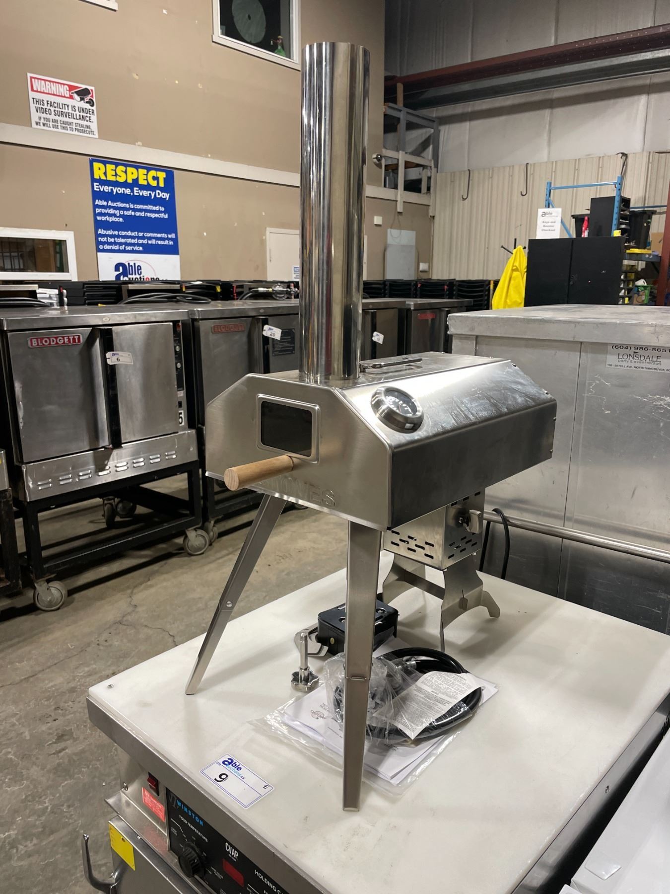 QUBESTOVE 2 IN 1 STAINLESS STEEL 12.6" PROPANE PORTABLE OUTDOOR PIZZA OVEN & STOVE FULLY INSULATED WITH FOLDABLE/DETACHABLE LEGS, REACHES 538 DEGREES CELSIUS IN 10 MINS INCLUDES 12.6" ROTATING PIZZA STONE & HOSE *IN BOX*