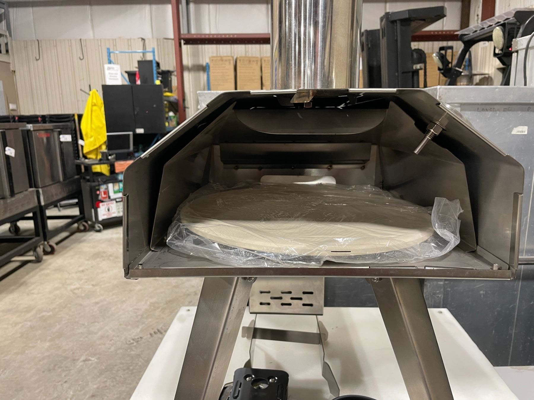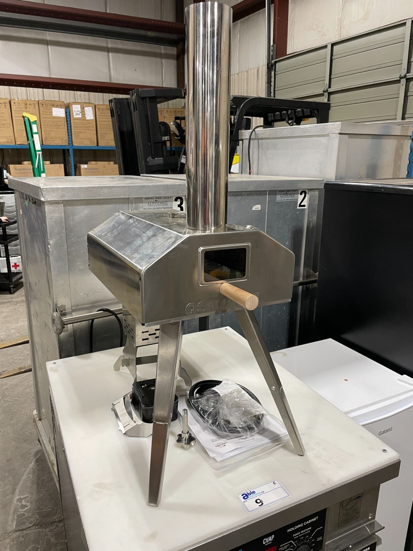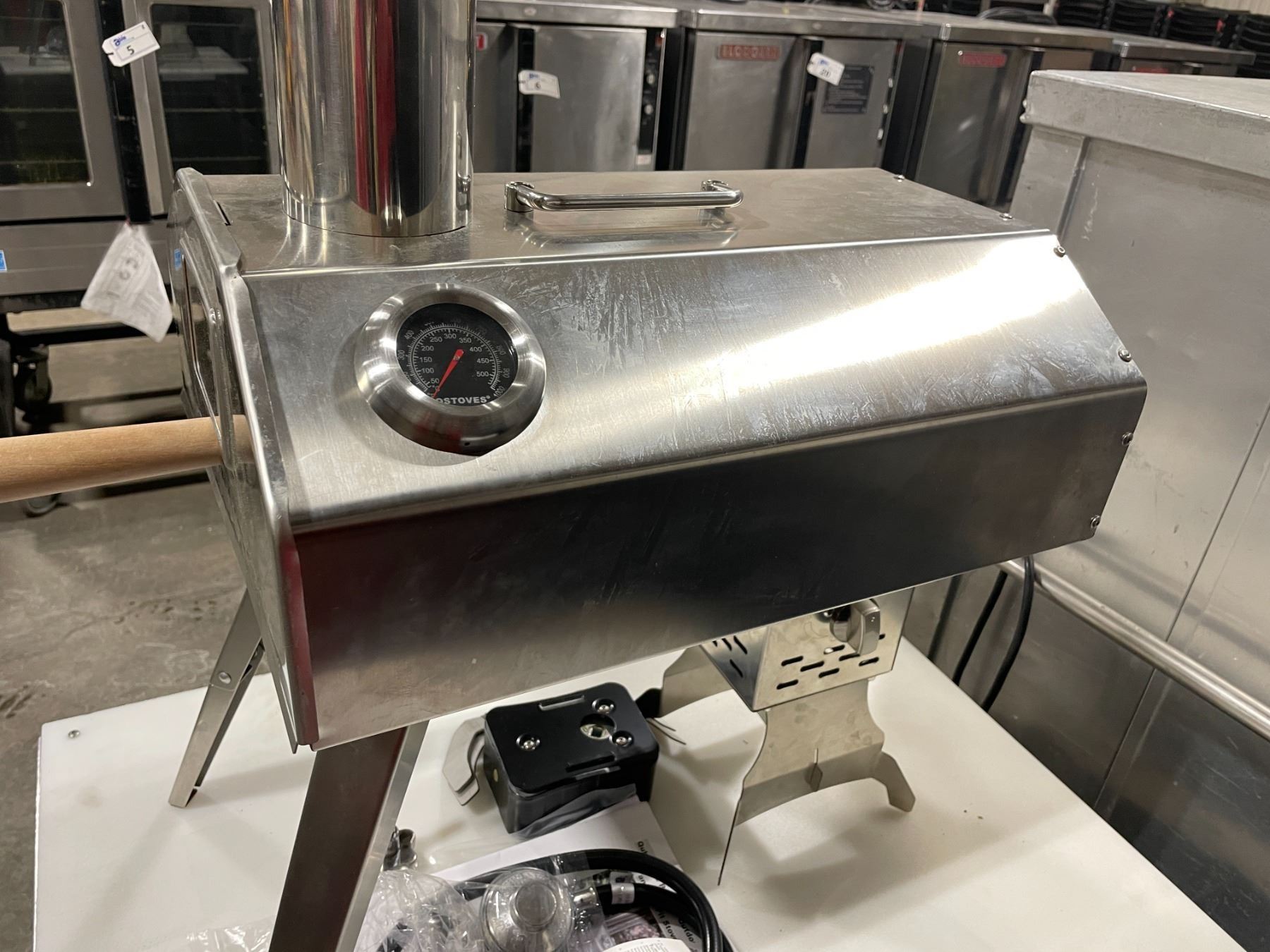 QUBESTOVE 2 IN 1 STAINLESS STEEL 12.6" PROPANE PORTABLE OUTDOOR PIZZA OVEN & STOVE FULLY INSULATED WITH FOLDABLE/DETACHABLE LEGS, REACHES 538 DEGREES CELSIUS IN 10 MINS INCLUDES 12.6" ROTATING PIZZA STONE & HOSE *IN BOX*